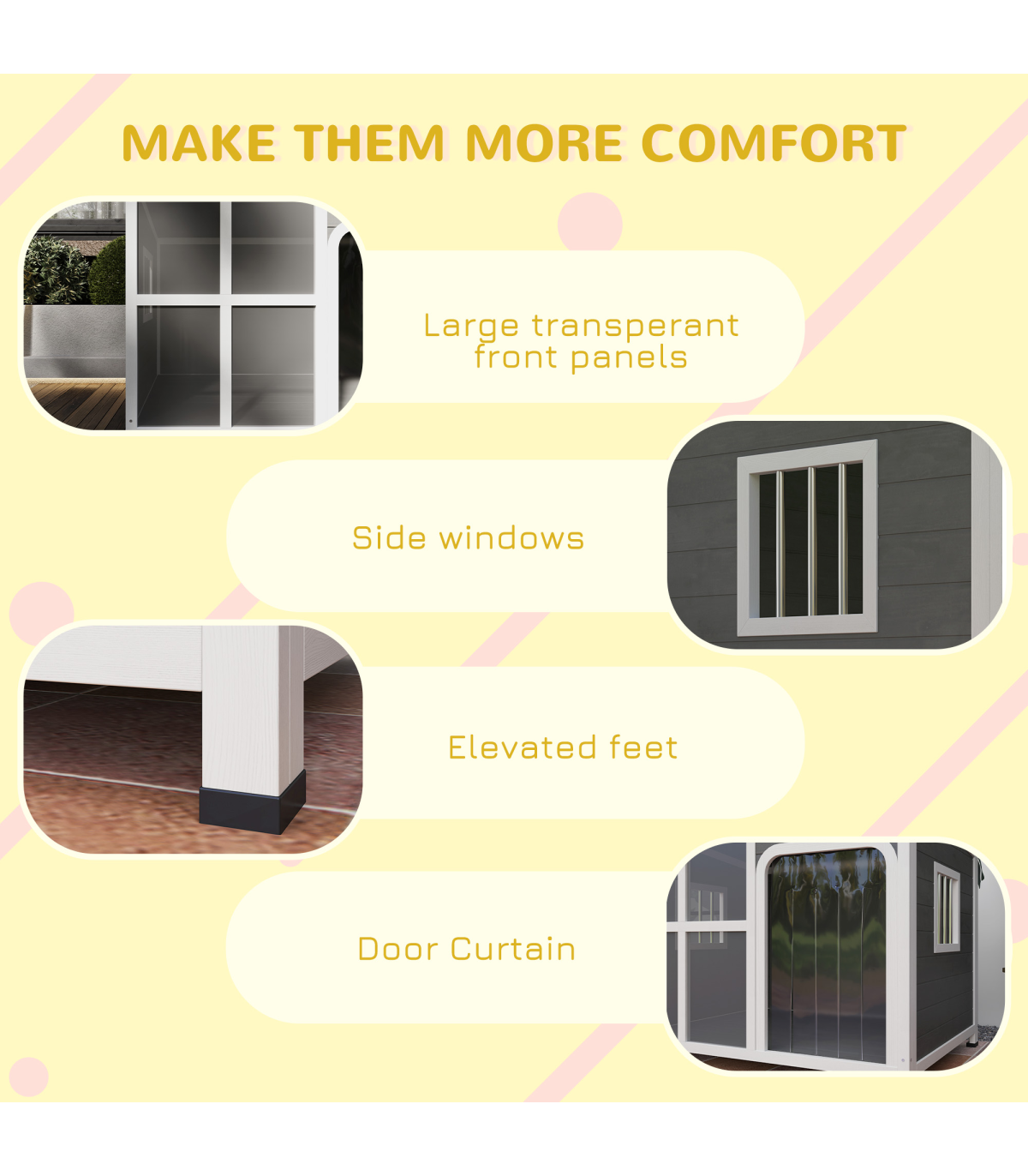 ● Plastic curtain on door hole enhances warmth and privacy