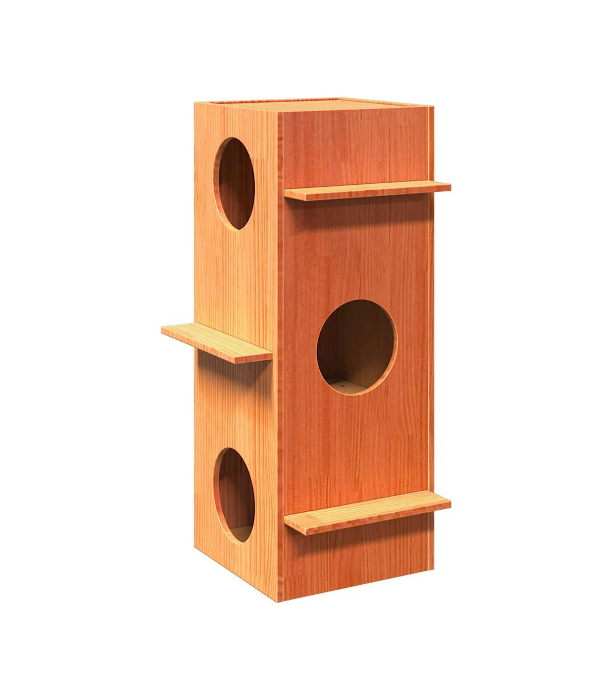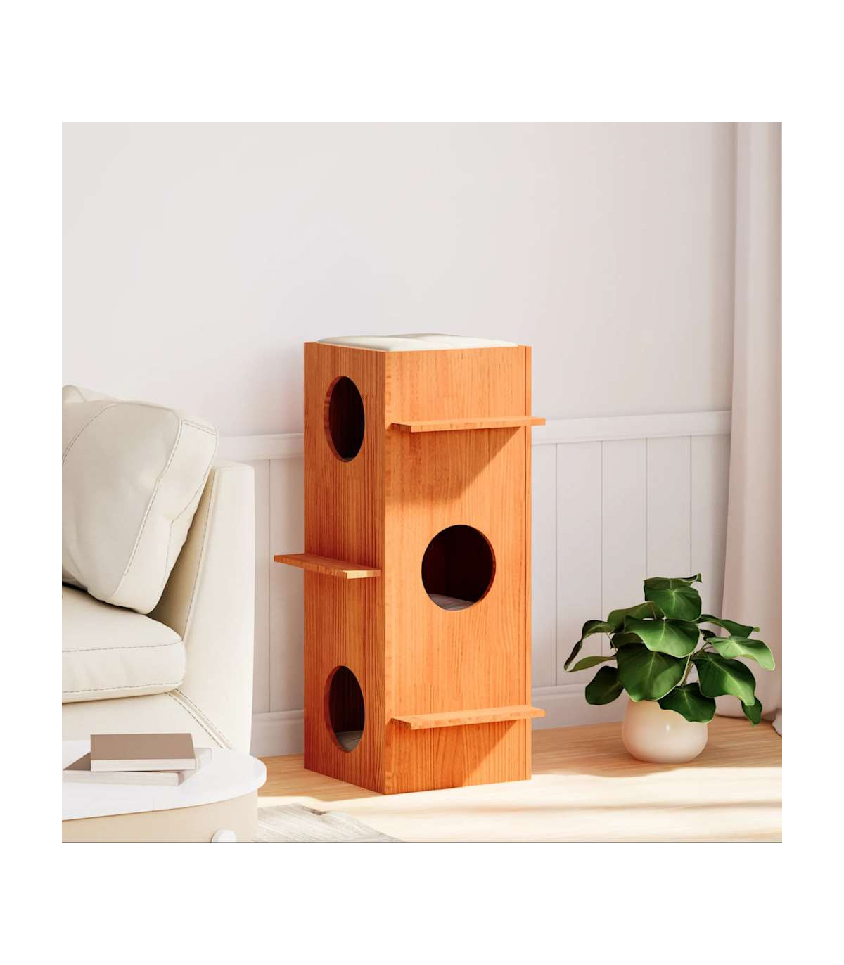 vidaXL Cat House Wax Brown 43x43x90 cm Solid Wood Pine
