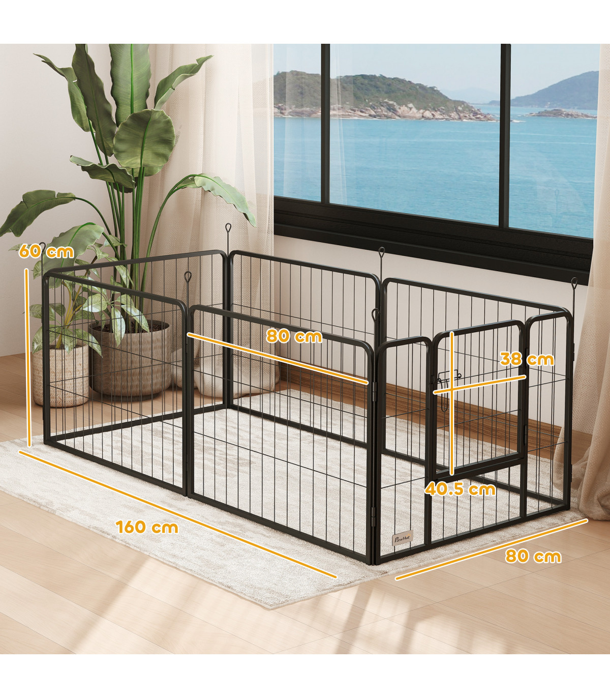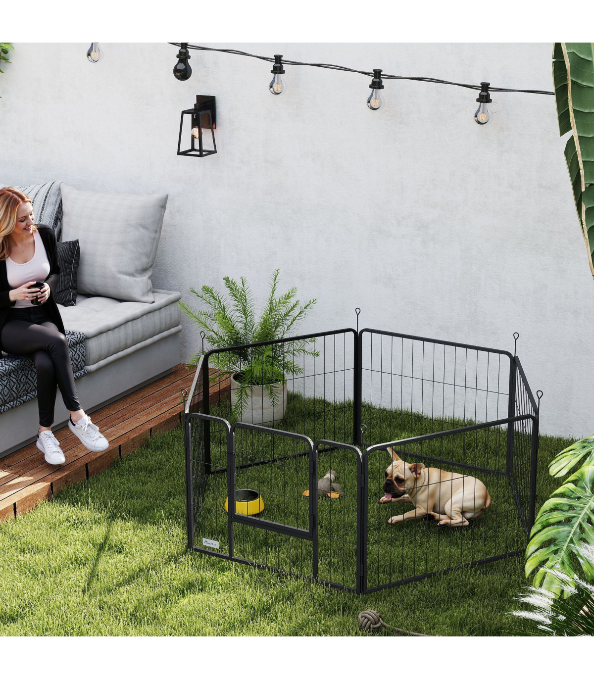 Discover the PawHut heavy duty dog pen, a versatile haven for your furry friend! Featuring six configurable panels, this playpen for dogs can transform into various shapes like a rectangle or L-shape, fitting your space and pet's needs. It's a secure, spacious area with an easy-access door, suitable for both indoor and outdoor use. Plus, it folds away effortlessly for simple storage. This indoor dog pen fit for puppies and medium dogs!