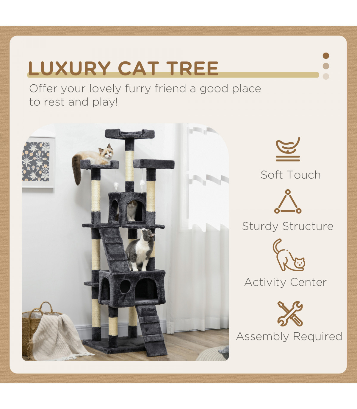● Includes three dangling toys for pets to play with