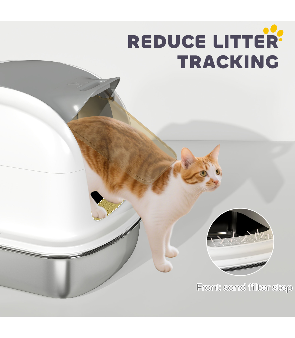 ? Front entrance and sand filter step collects litter from paws, so it wont spread