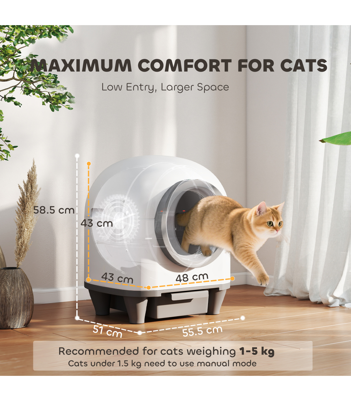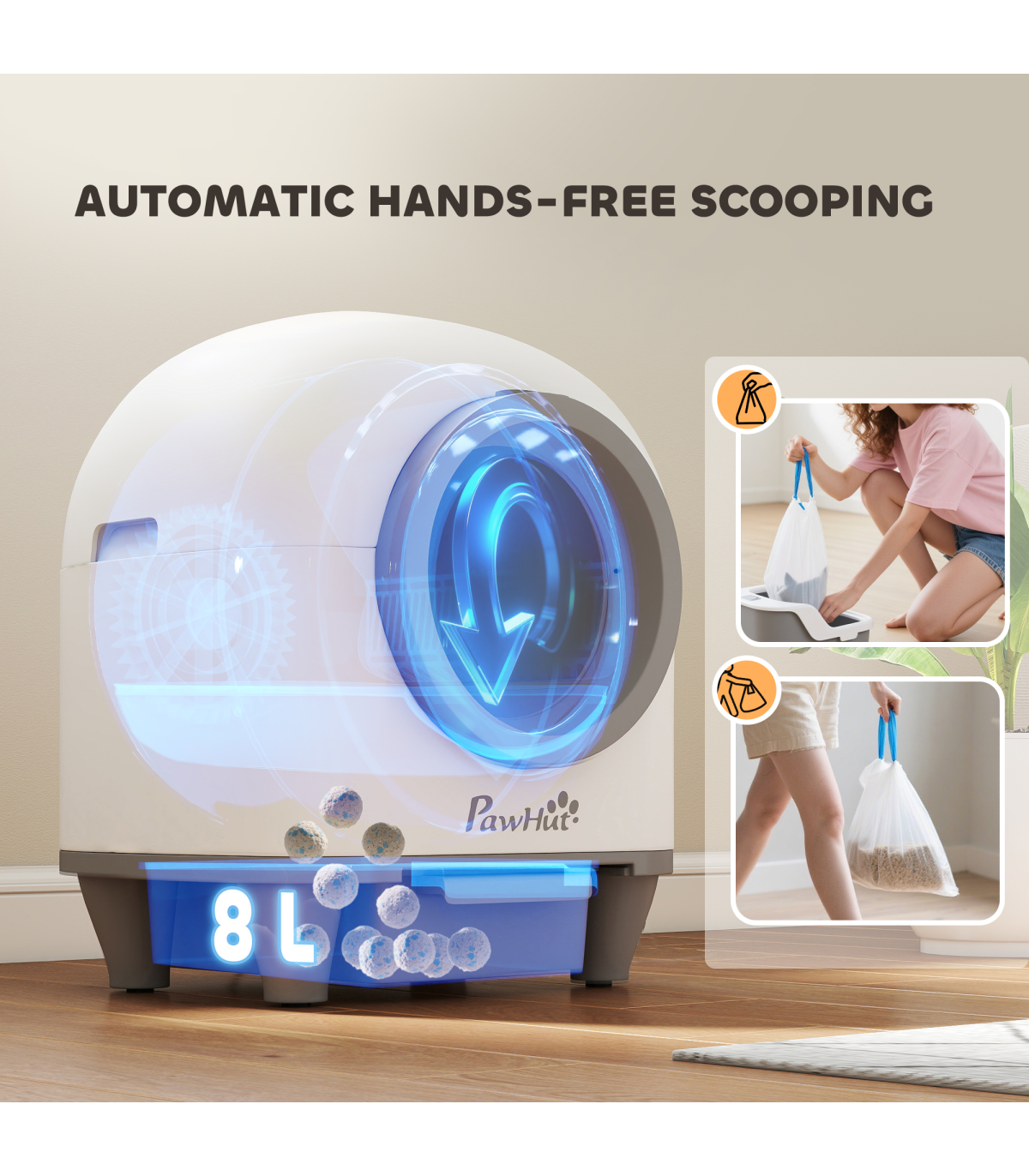 - Maximum Litter Capacity: <5 kg and <8L