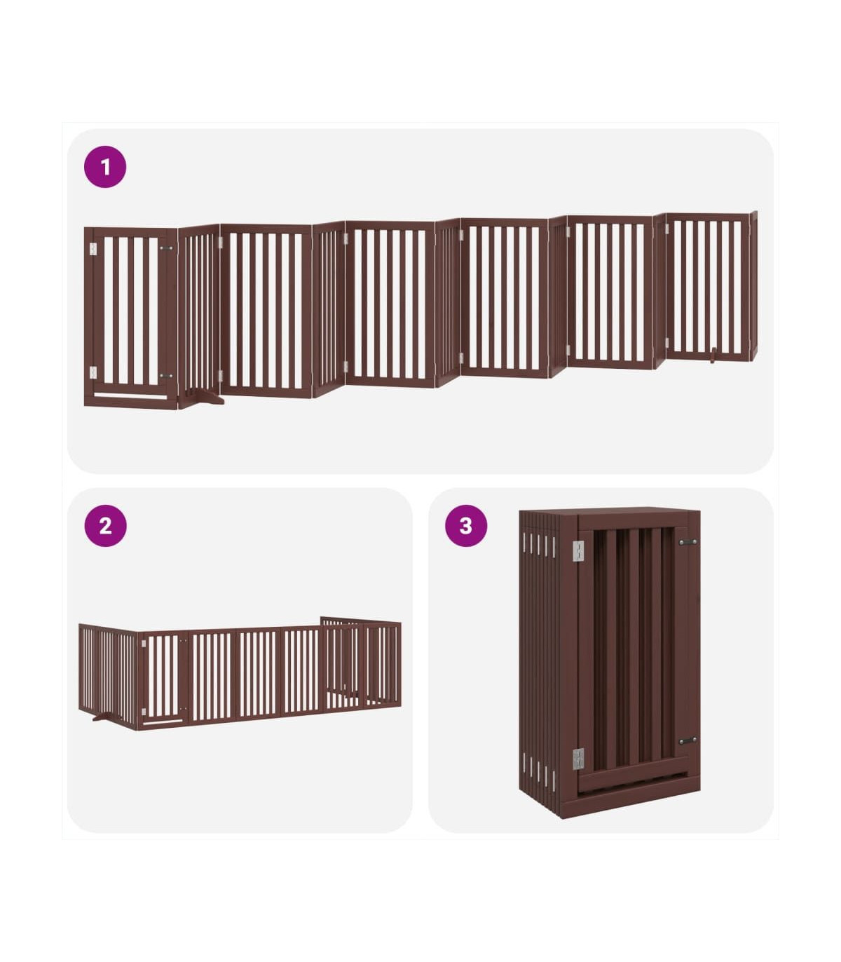 vidaXL Dog Gate with Door Foldable 12 Panels Brown 600 cm Poplar Wood