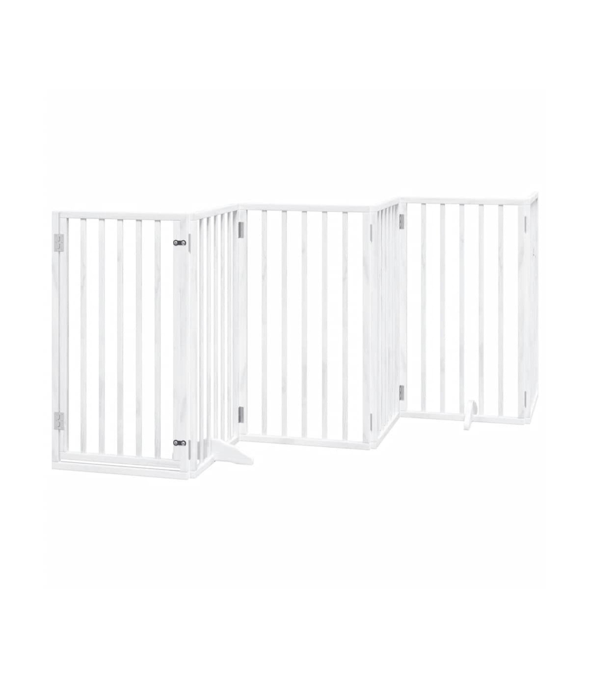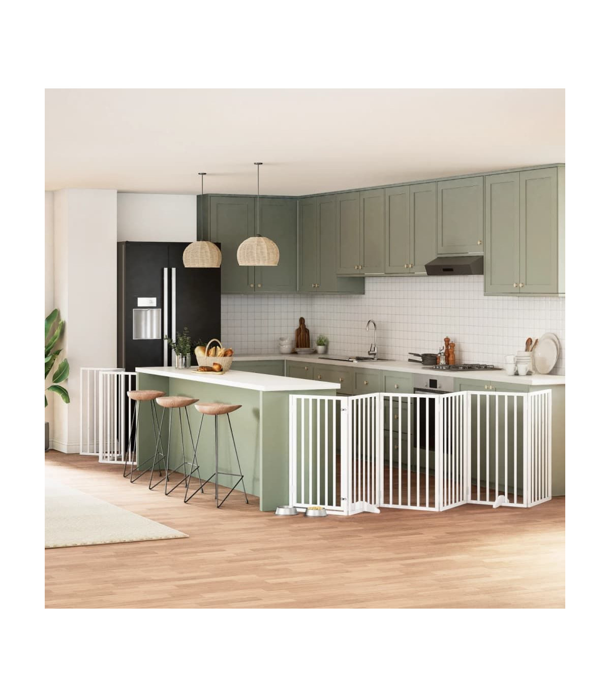 vidaXL Dog Gate with Door Foldable 15 Panels White 750 cm Poplar Wood