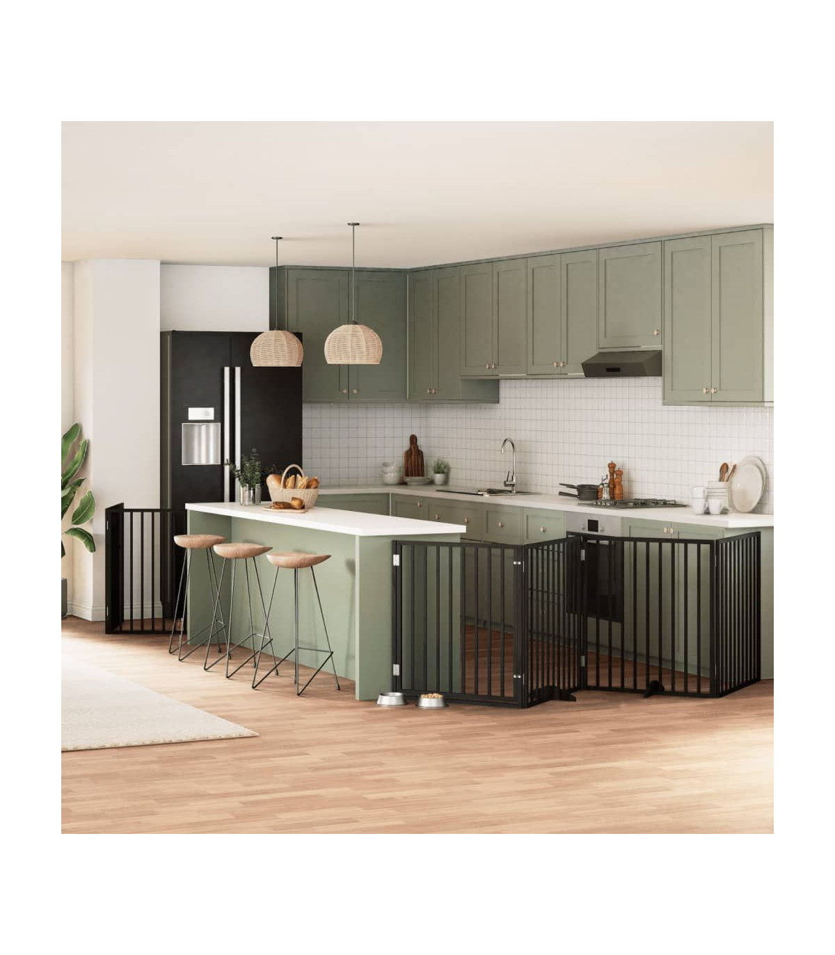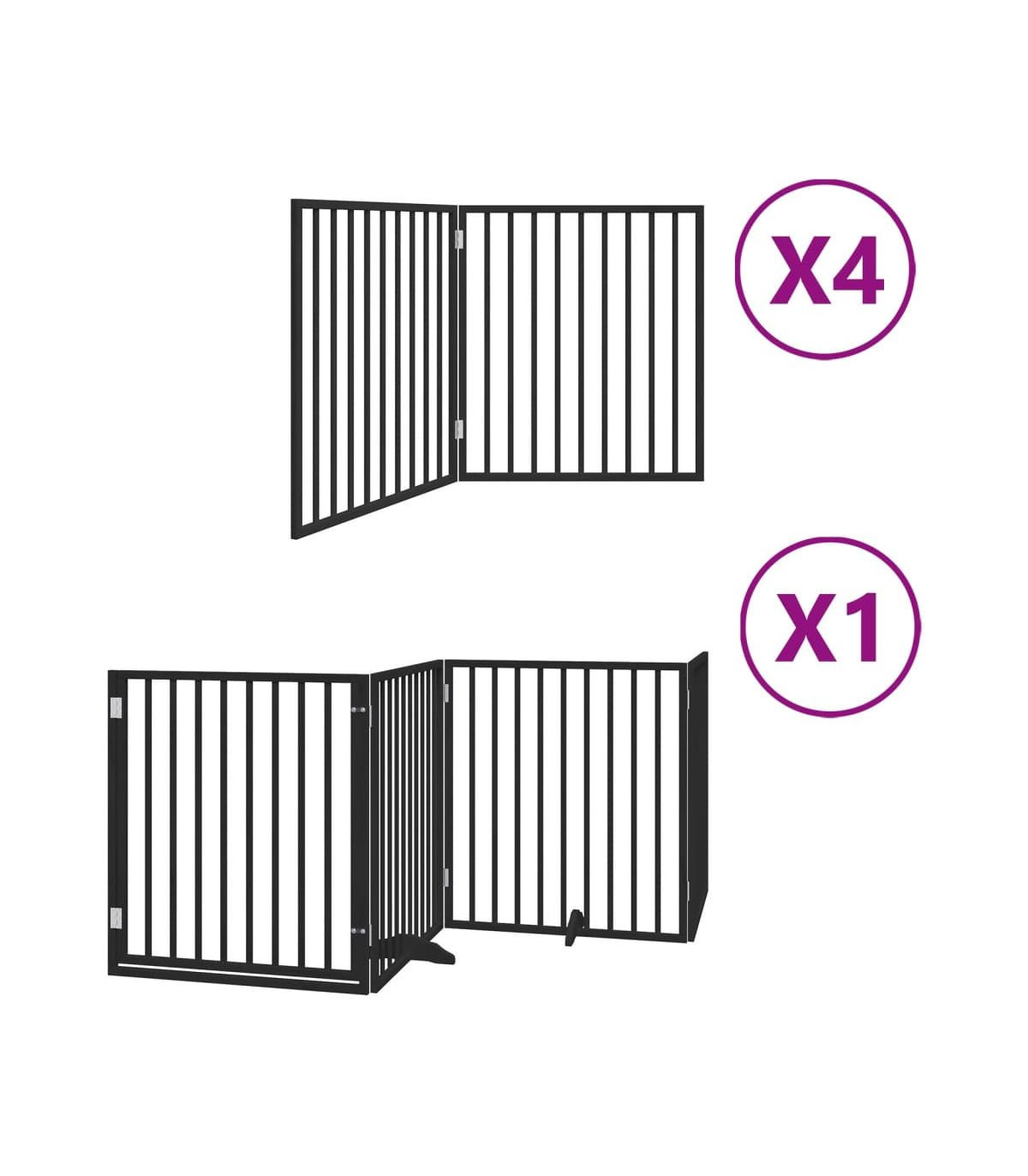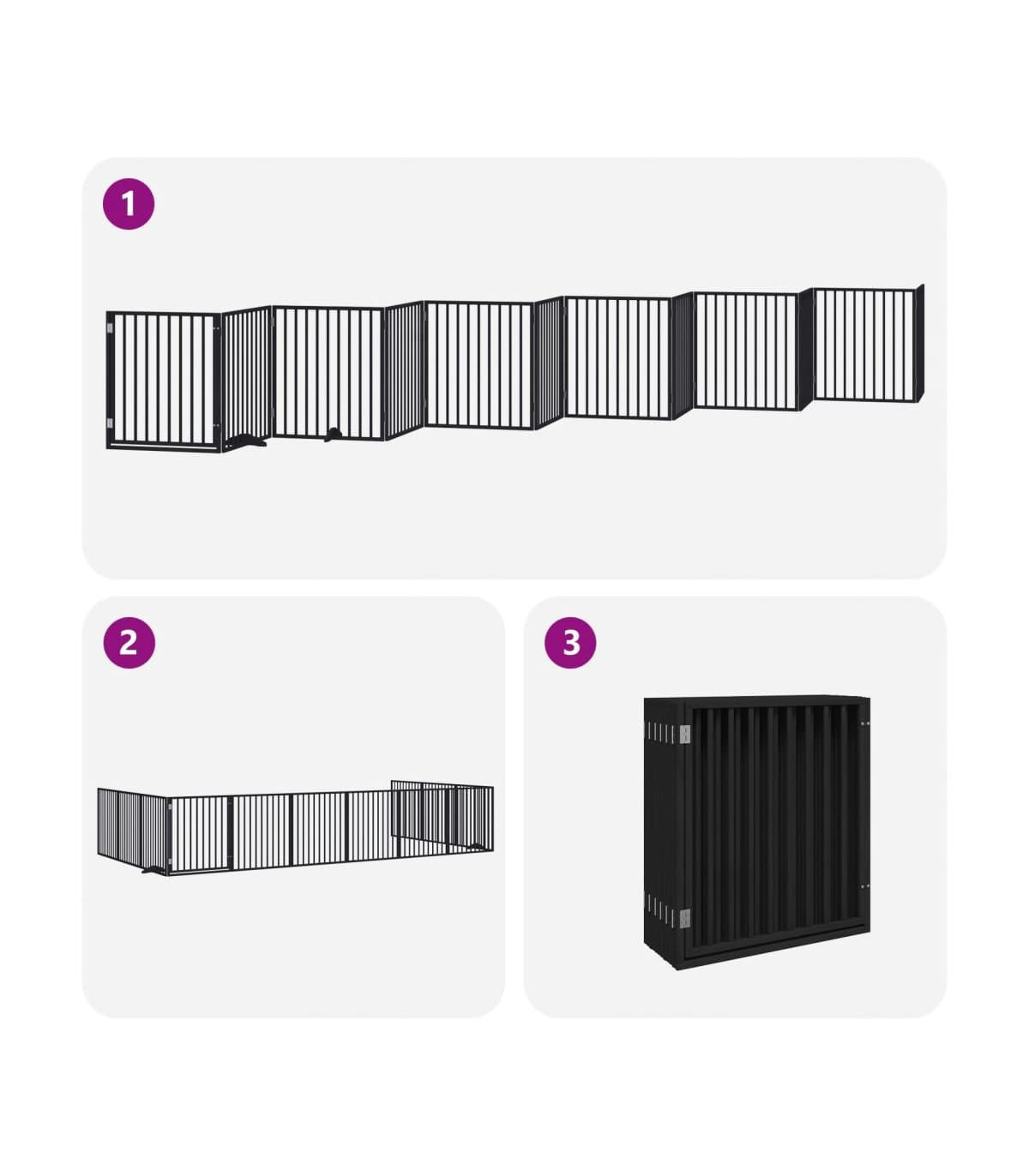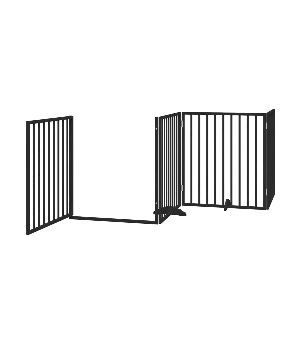 vidaXL Dog Gate with Door Foldable 12 Panels Black 960 cm Poplar Wood