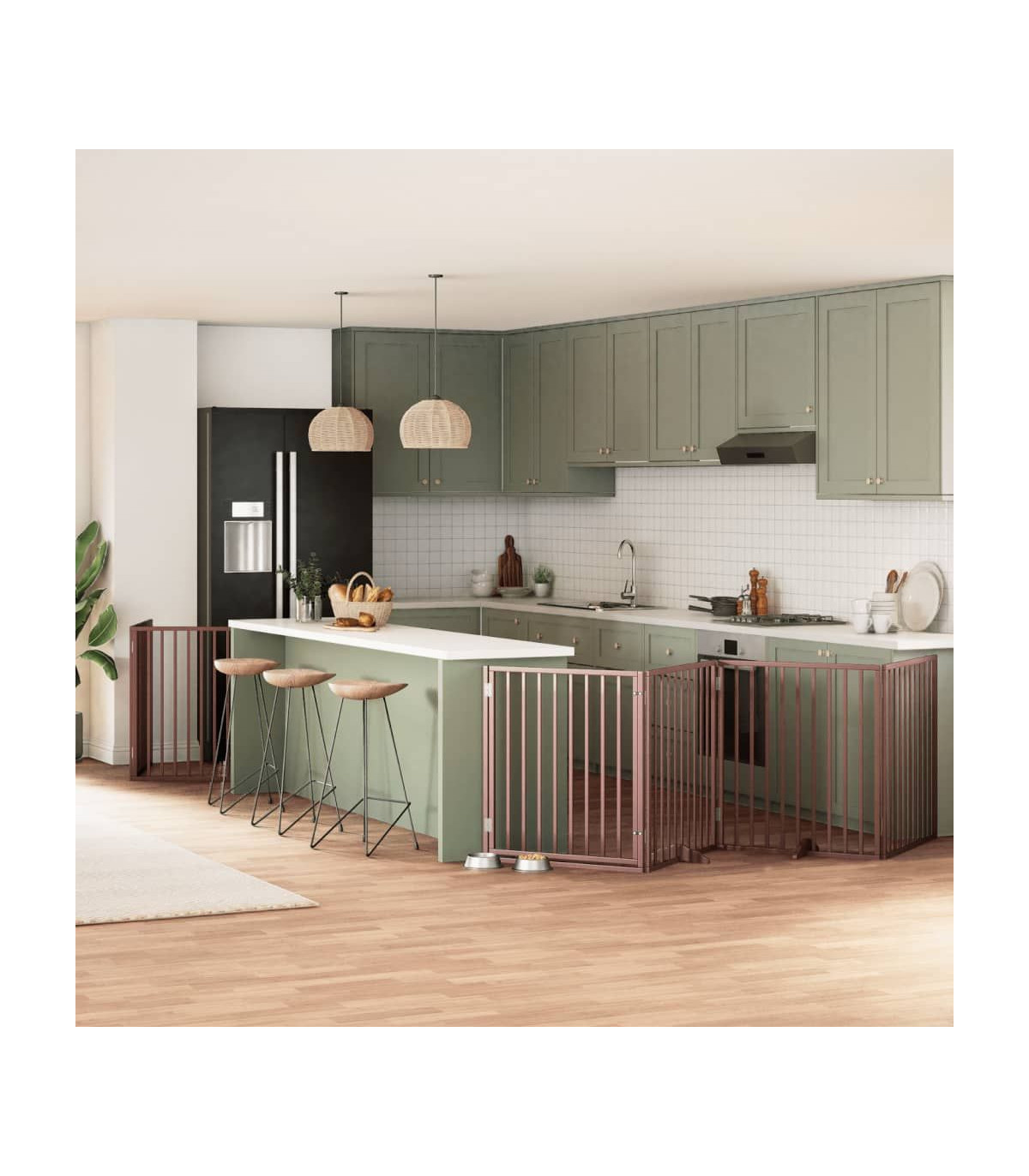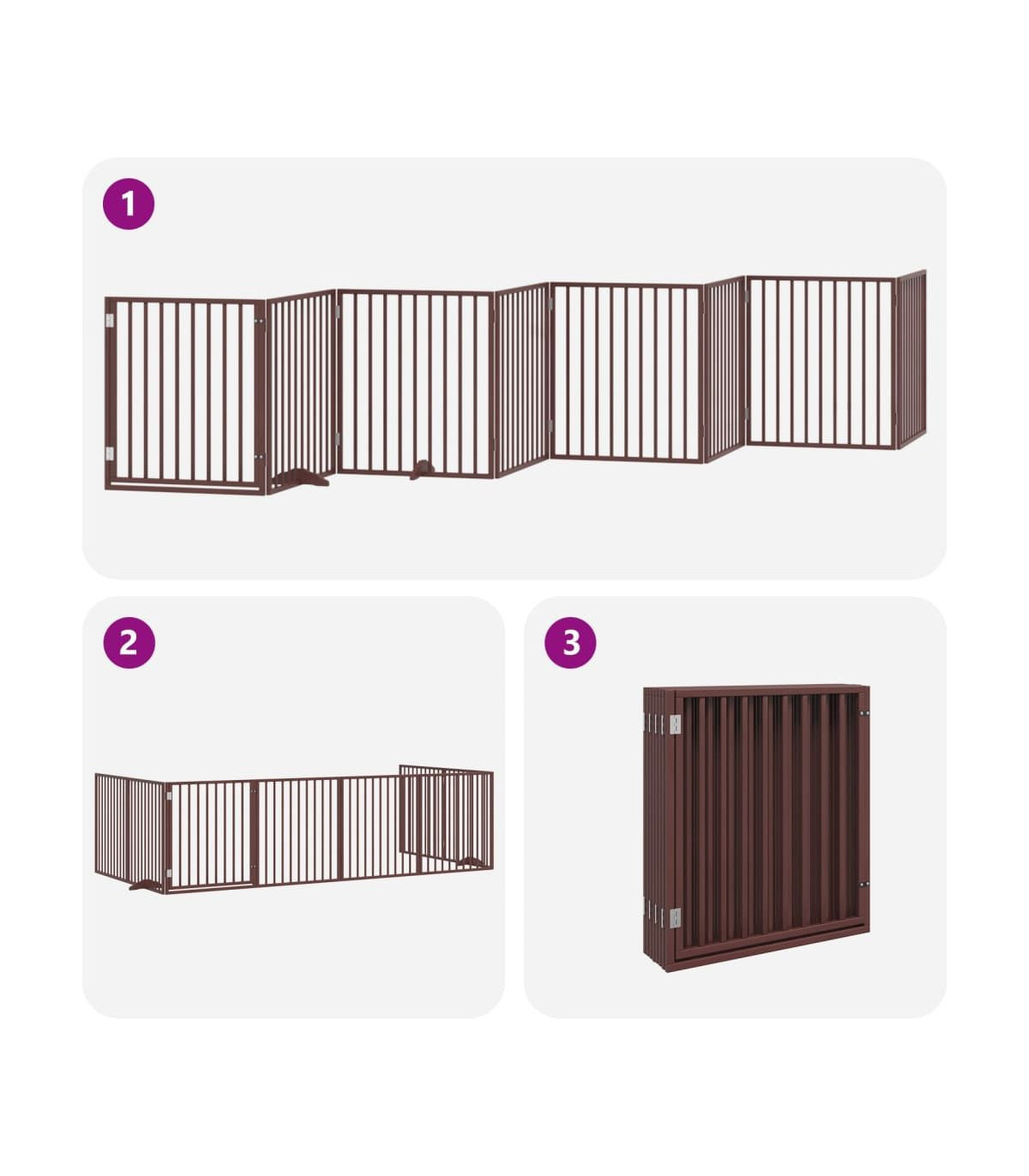 vidaXL Dog Gate with Door Foldable 8 Panels Brown 640 cm Poplar Wood