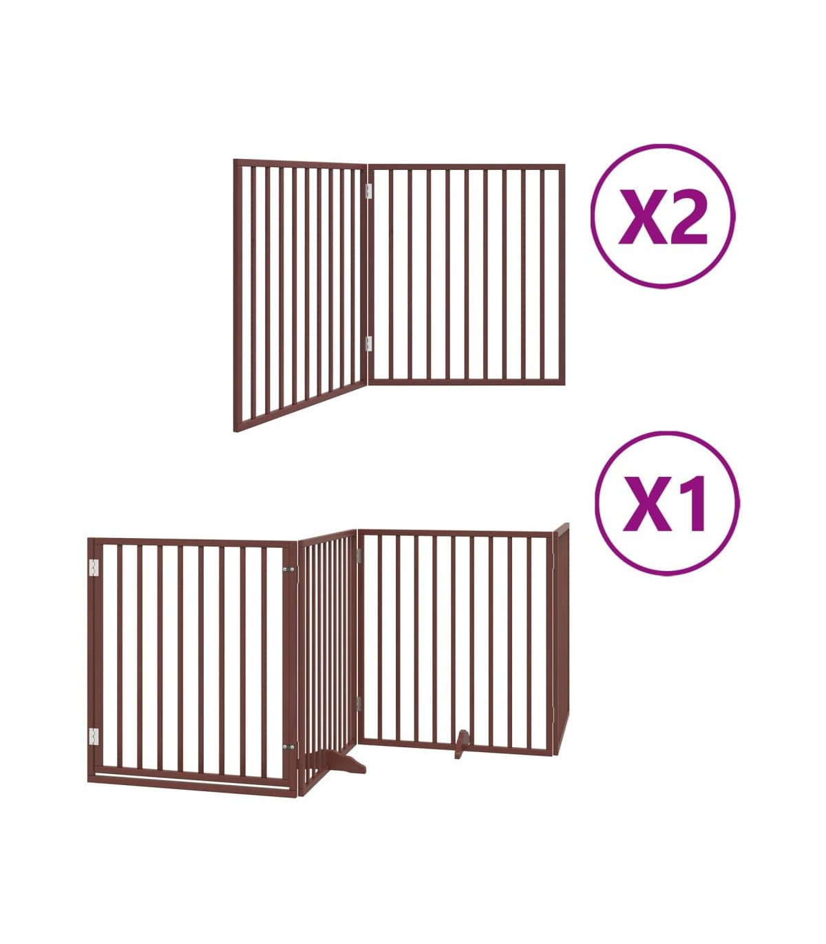 The dog gate puts your pet in a fixed activity area, which can keep your pet safe and prevent you from being disturbed. Durable material: The dog gate is made of poplar wood with water-base paint, making it durable, long-lasting, and easy to clean. Easy to use: The dog gate does not require installation or drilling that doesn't damage your home. This dog gate can be totally foldable when without feet, making it easy to carry and store in the closet or somewhere else. Practical design: The dog gate features two sturdy feet, providing stability and allowing for easy adjustments. Additionally, it includes a door panel and is equipped with locks, providing enhanced security and convenience for both you and your pets. Multiple applications: This dog gate can effectively prevent your pets from jumping over and getting through. Therefore, it is perfect for keeping your pets safe in the living room, kitchen, stairs, and doorway.