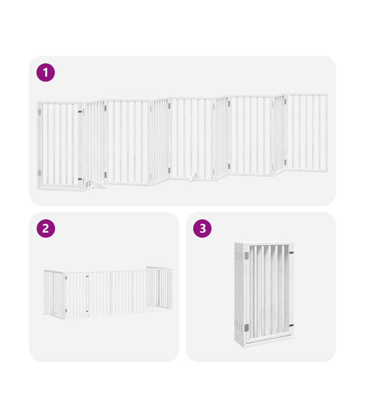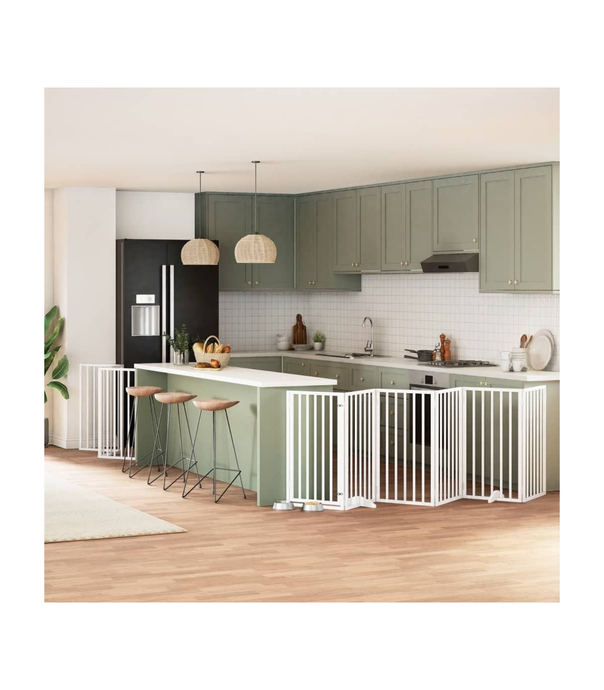 vidaXL Dog Gate with Door Foldable 9 Panels White 450 cm Poplar Wood