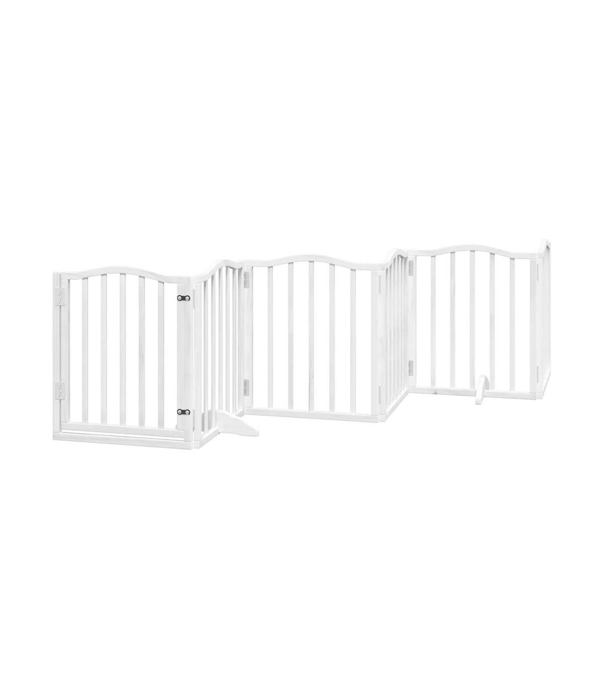 vidaXL Dog Gate with Door Foldable 9 Panels White 450 cm Poplar Wood