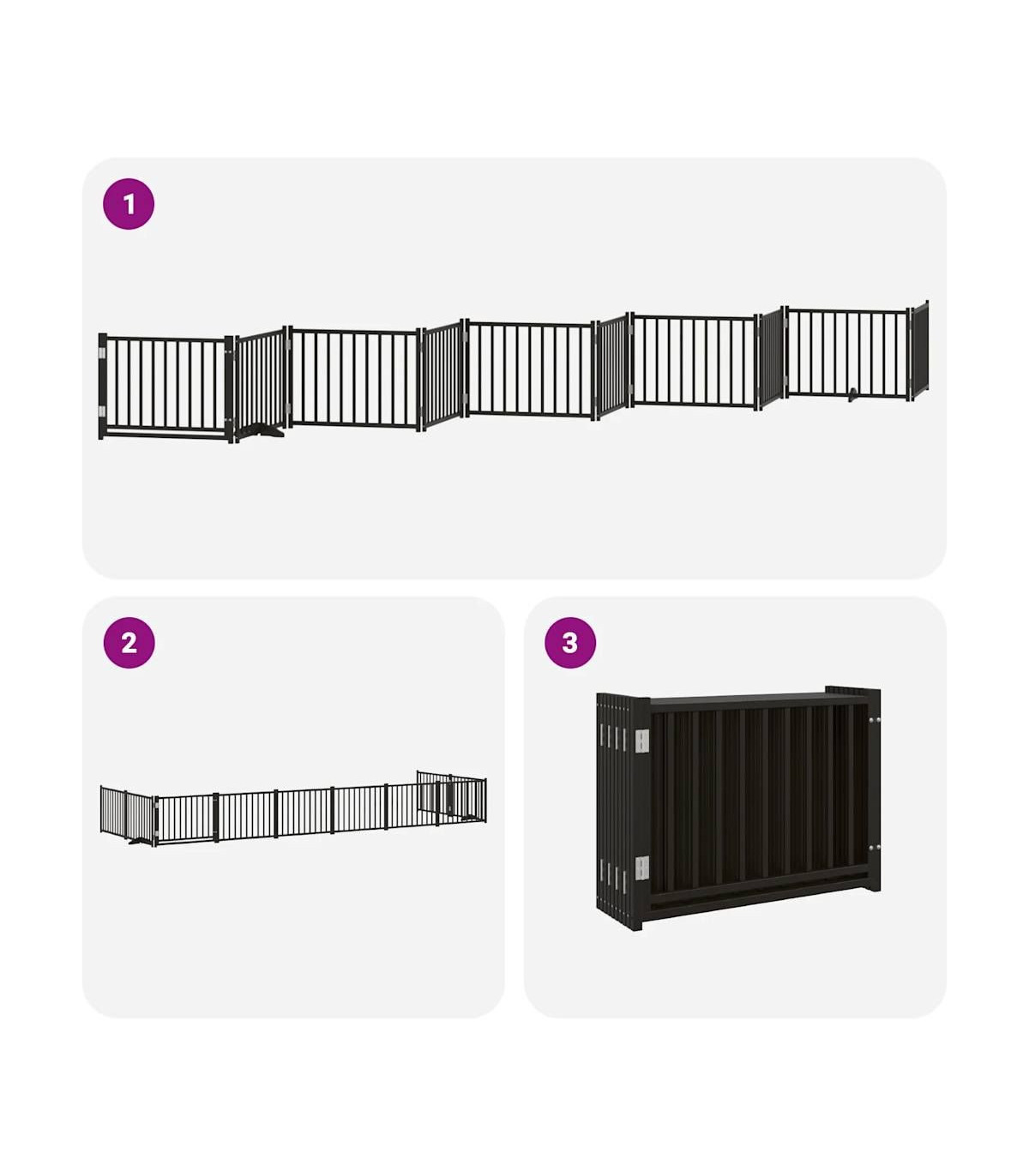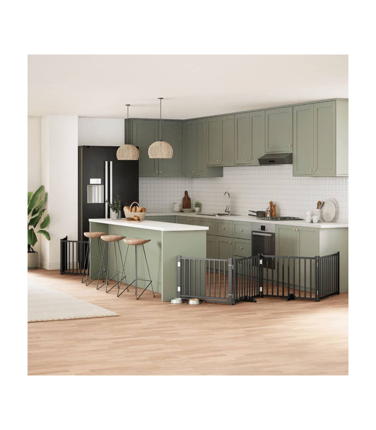 vidaXL Dog Gate with Door Foldable 10 Panels Black 800 cm Poplar Wood