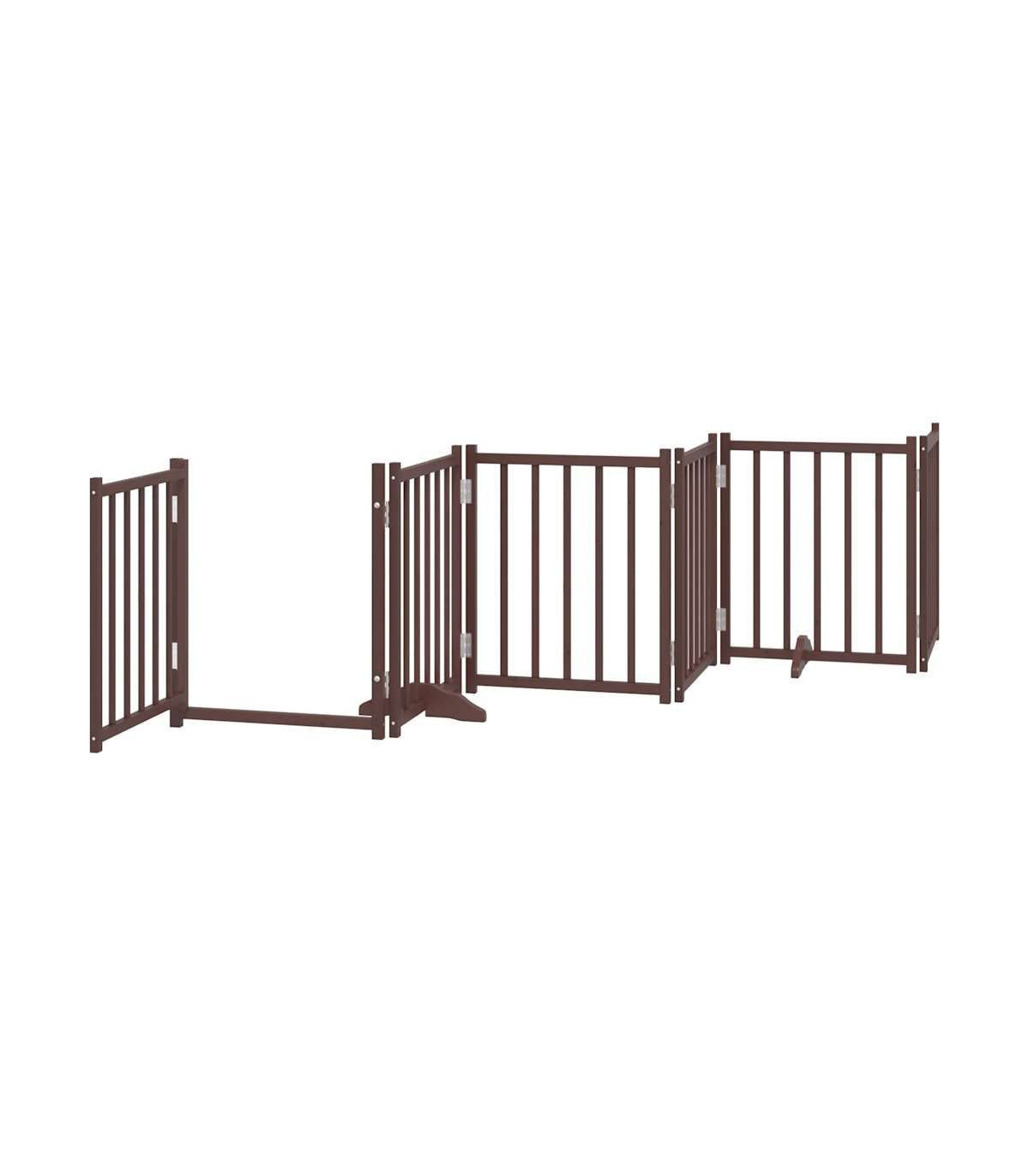 vidaXL Dog Gate with Door Foldable 15 Panels Brown 750 cm Poplar Wood