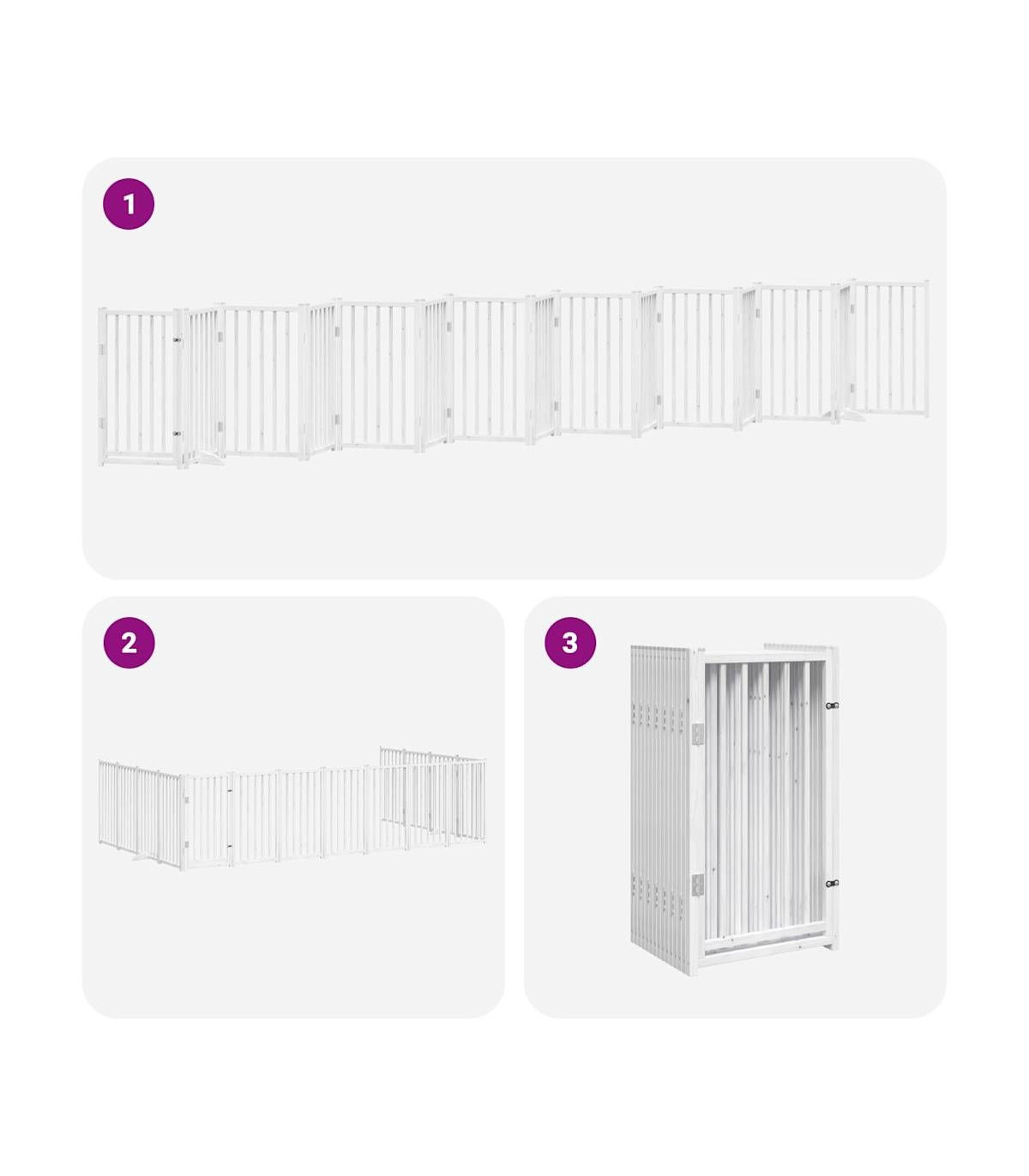 vidaXL Dog Gate with Door Foldable 15 Panels White 750 cm Poplar Wood