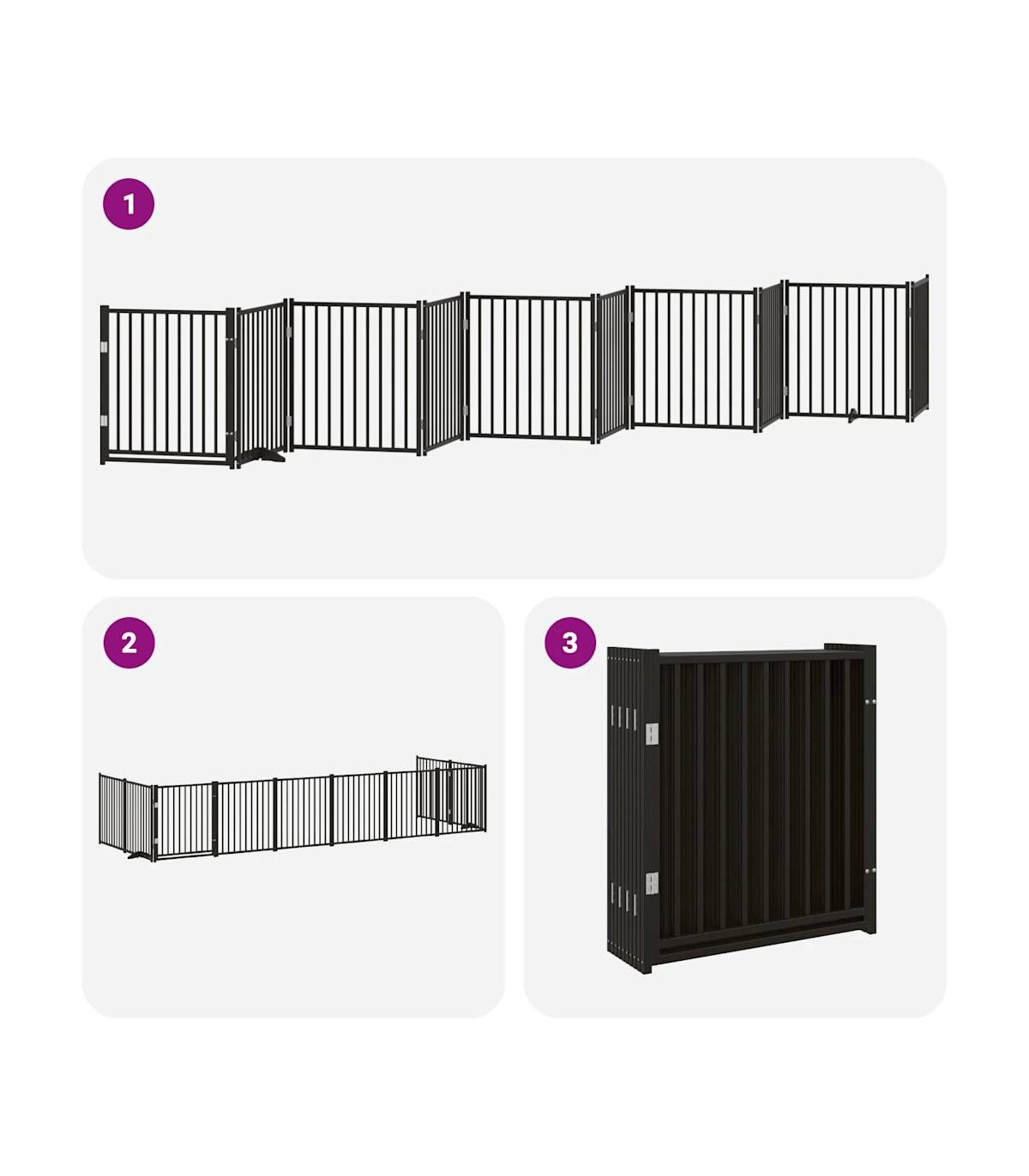 vidaXL Dog Gate with Door Foldable 10 Panels Black 800 cm Poplar Wood
