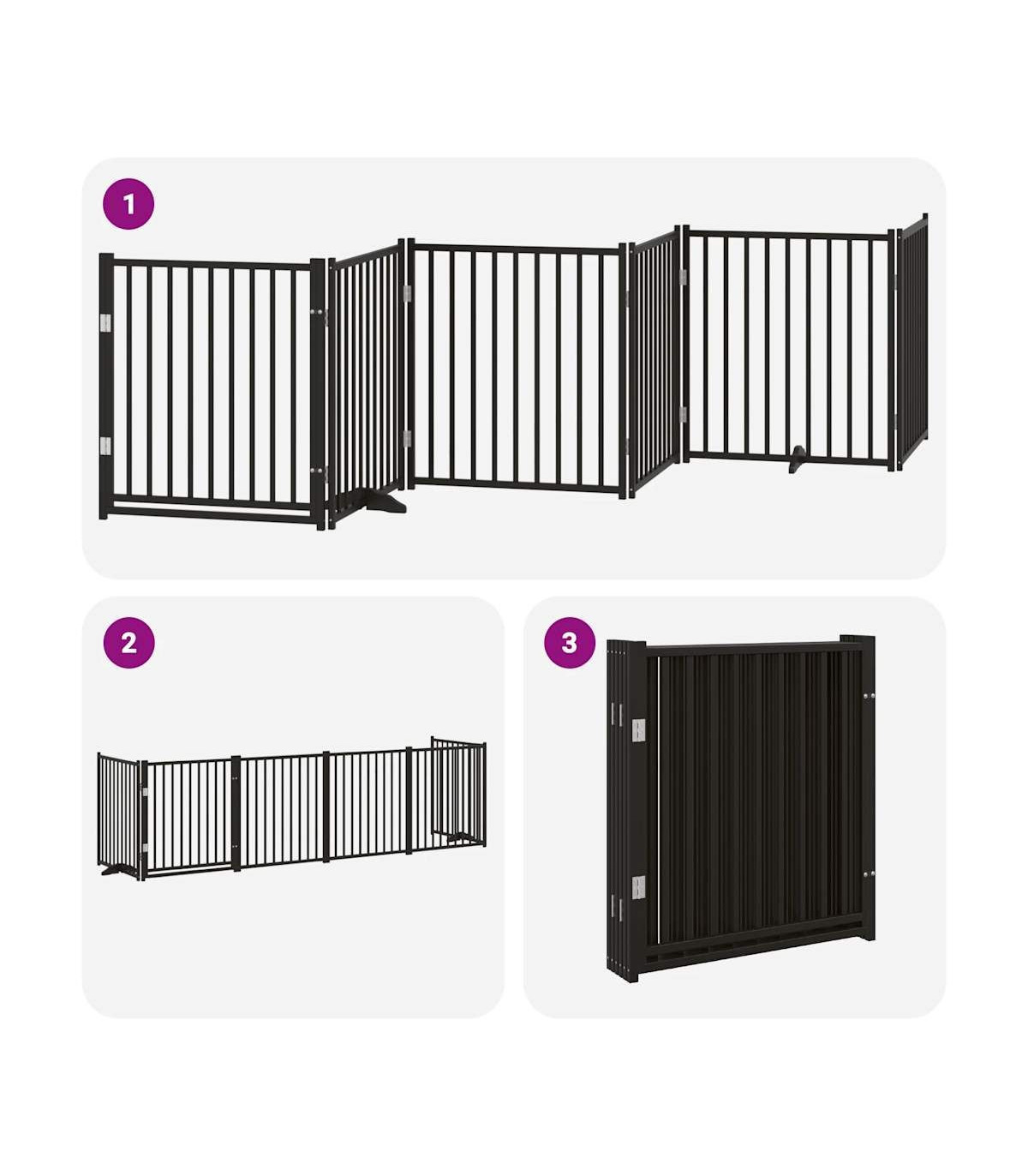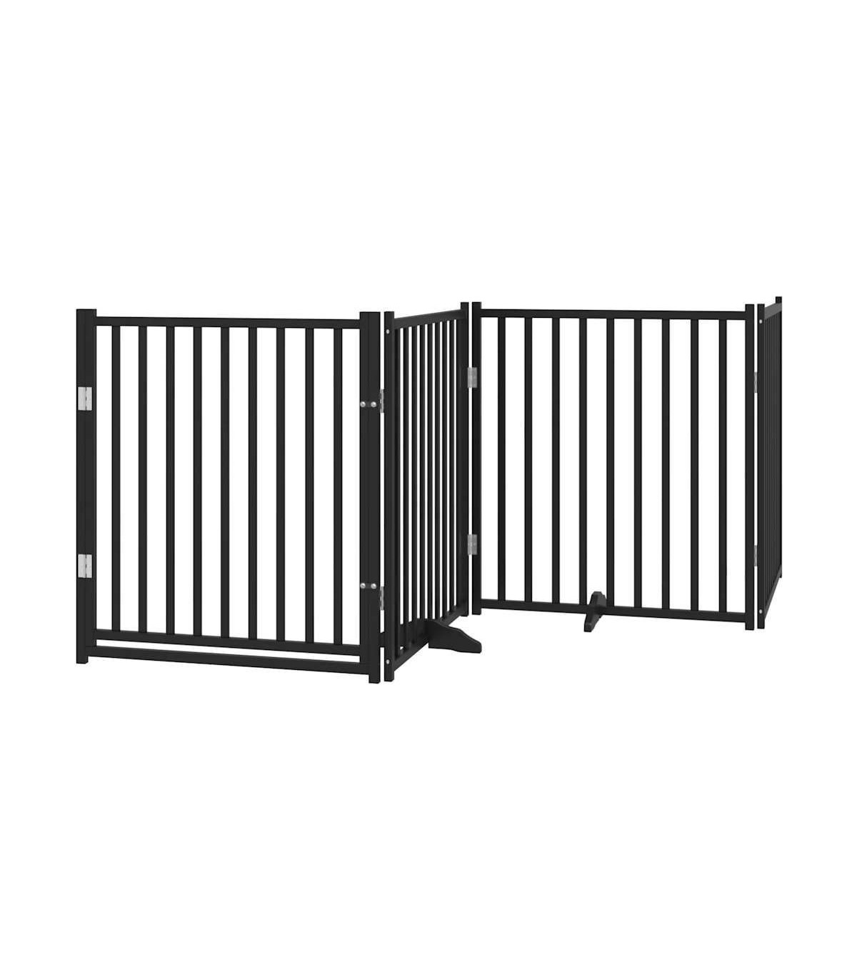 vidaXL Dog Gate with Door Foldable 6 Panels Black 480 cm Poplar Wood