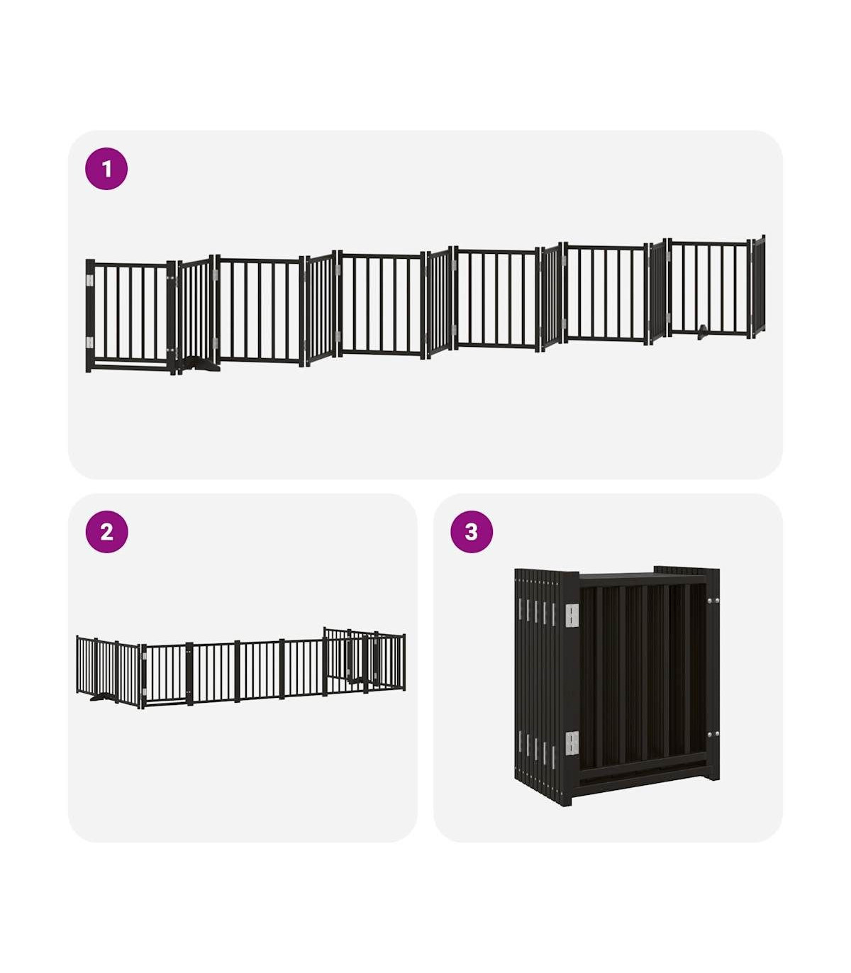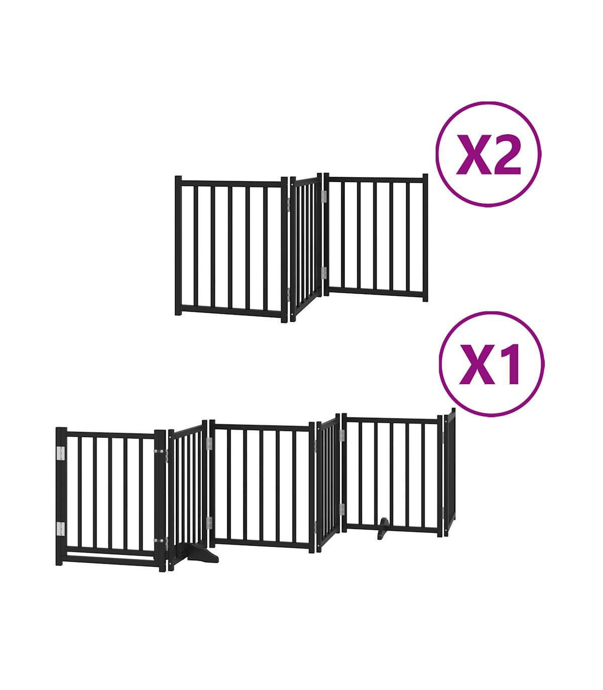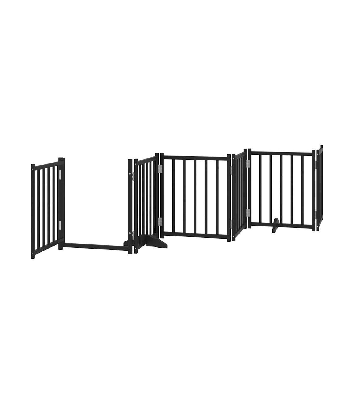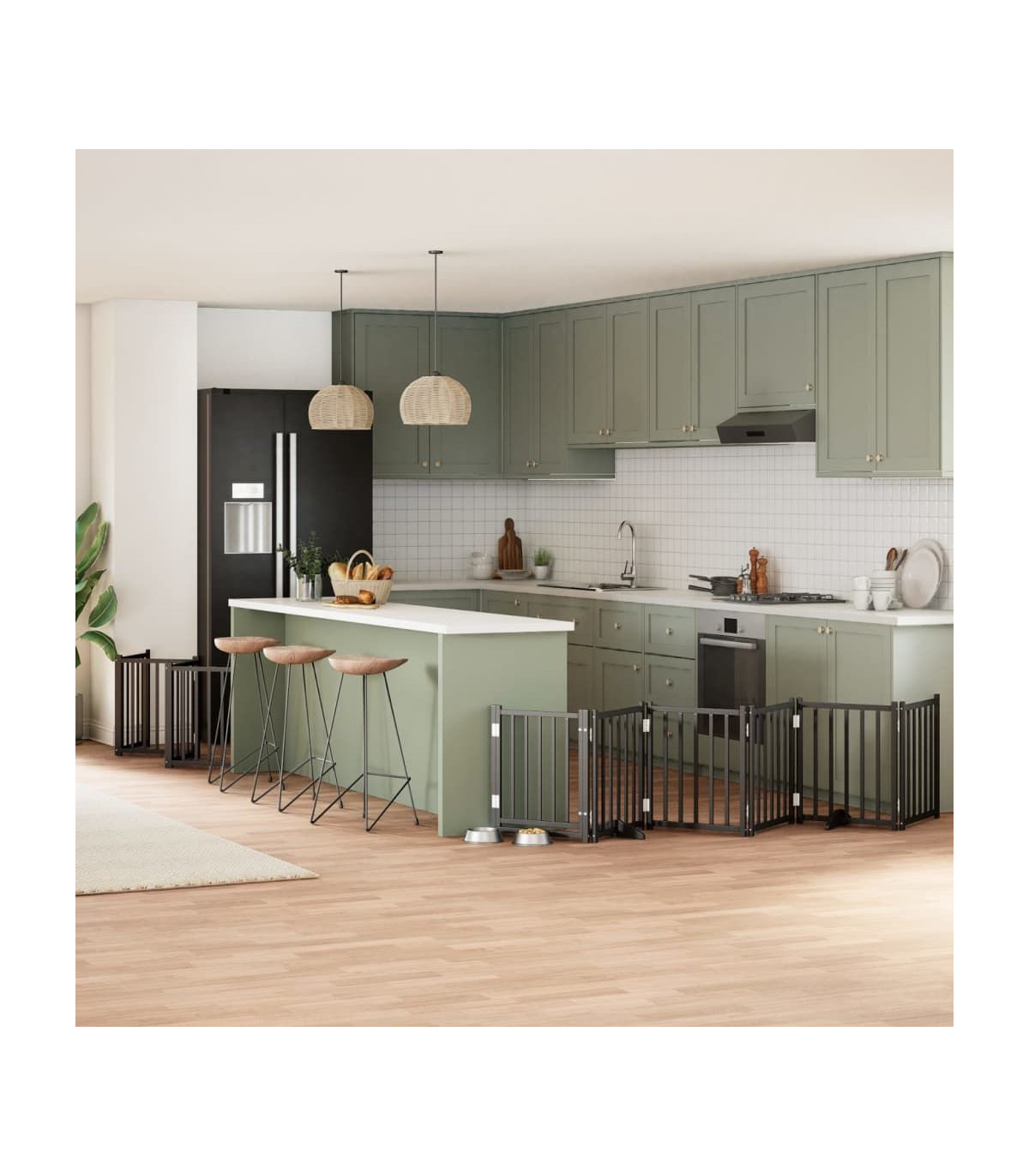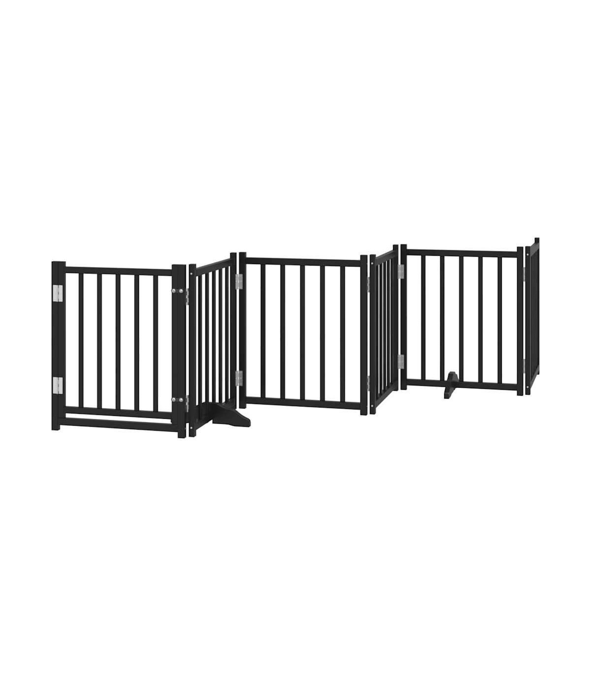 The dog gate puts your pet in a fixed activity area, which can keep your pet safe and prevent you from being disturbed. Durable material: The dog gate is made of poplar wood with water-base paint, making it durable, long-lasting, and easy to clean. Easy to use: The dog gate does not require installation or drilling that doesn't damage your home. This dog gate can be totally foldable when without feet, making it easy to carry and store in the closet or somewhere else. Practical design: The dog gate features two sturdy feet, providing stability and allowing for easy adjustments. Additionally, it includes a door panel and is equipped with locks, providing enhanced security and convenience for both you and your pets. Multiple applications: This dog gate can effectively prevent your pets from jumping over and getting through. Therefore, it is perfect for keeping your pets safe in the living room, kitchen, stairs, and doorway.