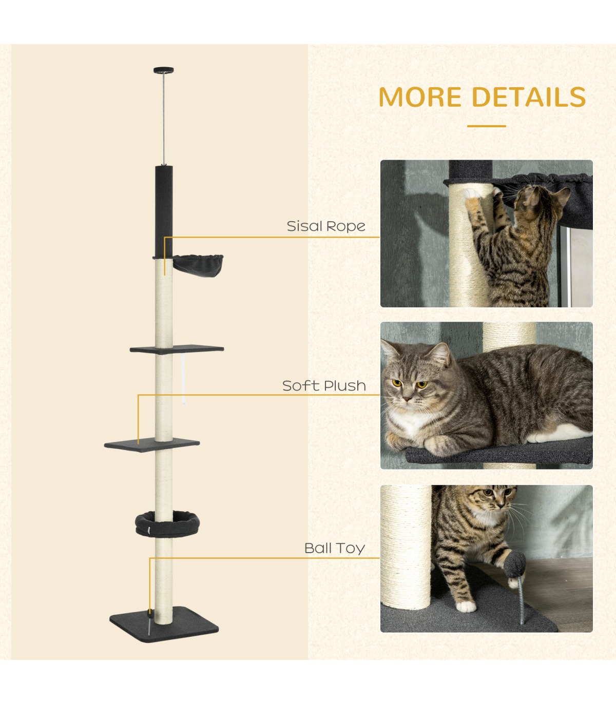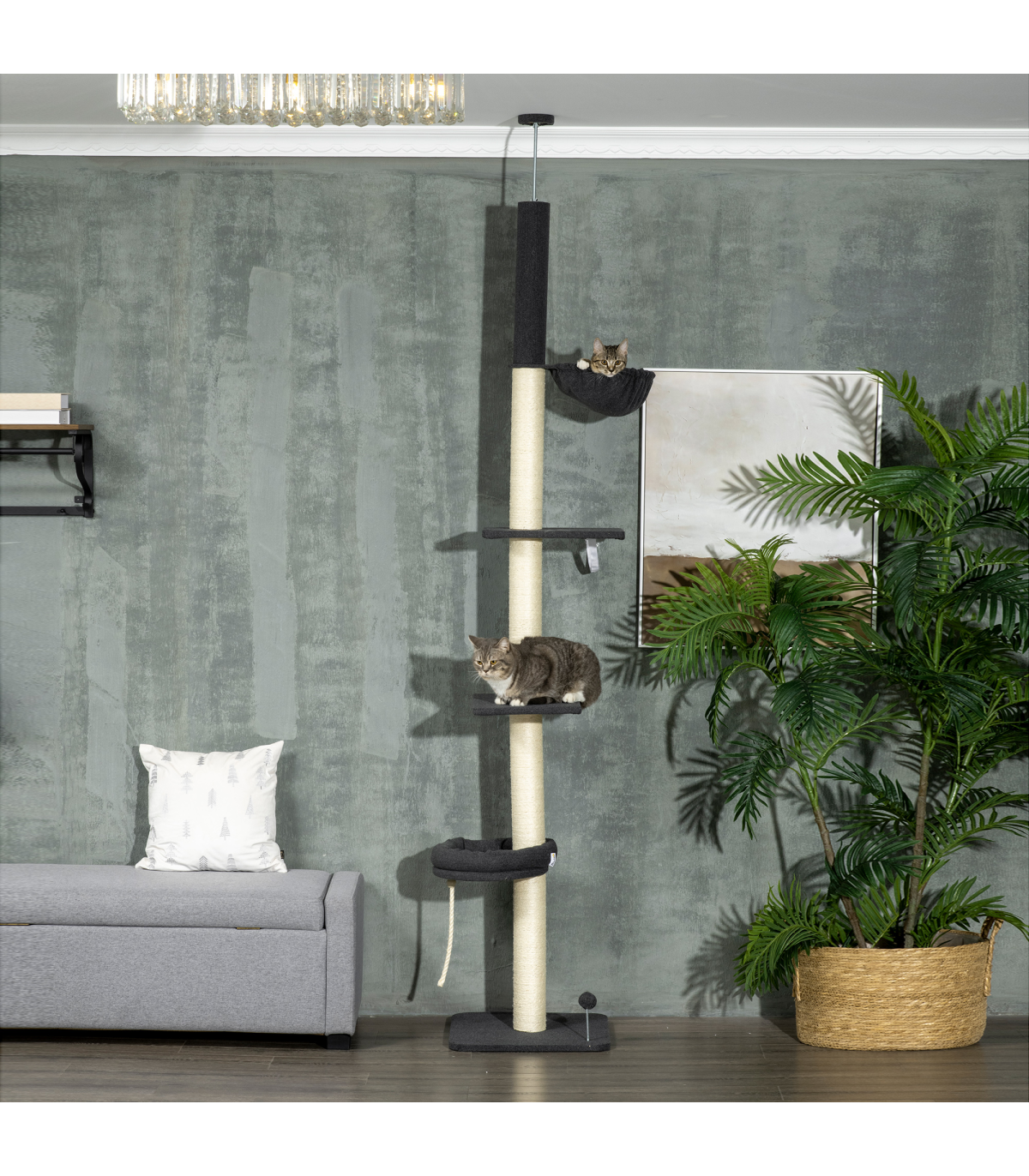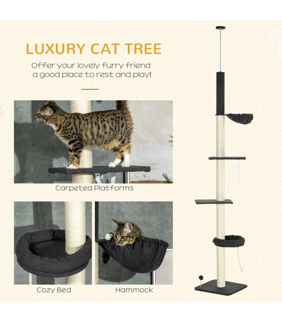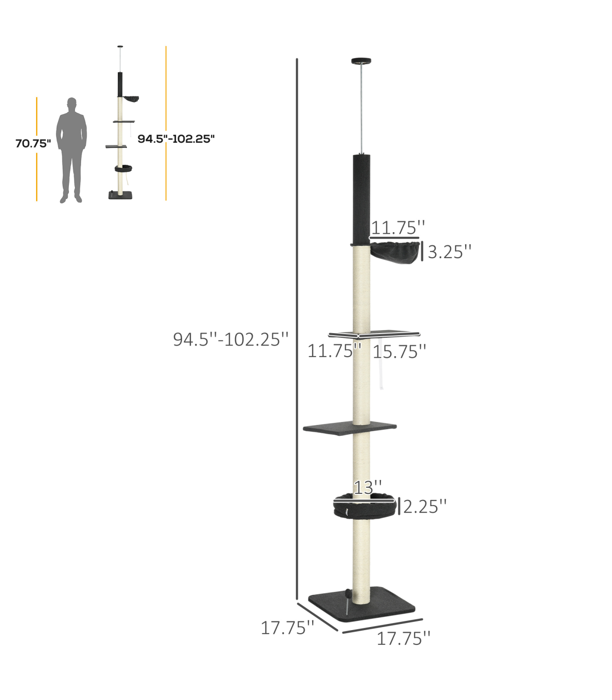 - - 94.5" - 106.25'' adjustable height with an anti-topple strap offers your cats a great spot to survey the land (your home) around them