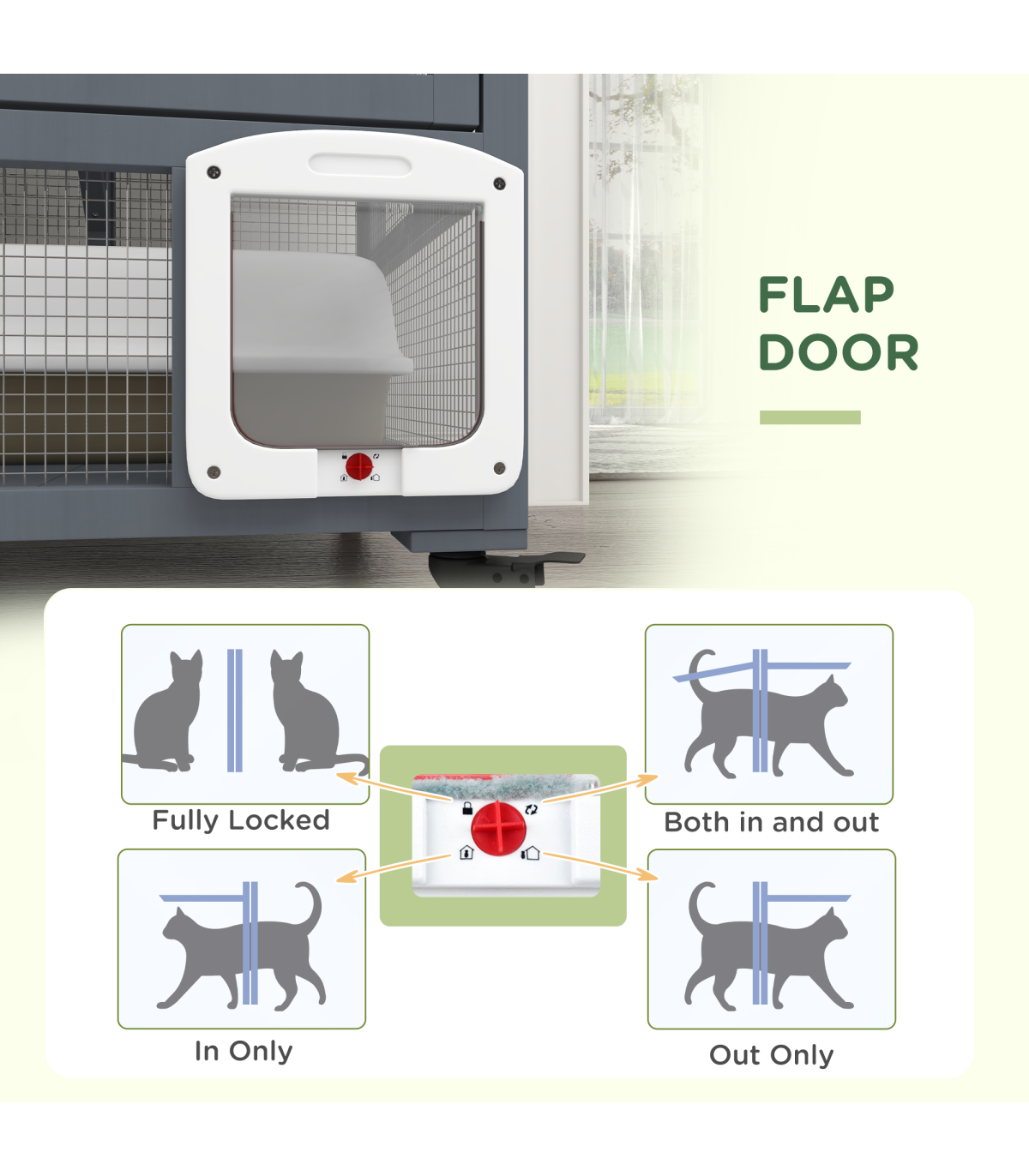 - - Flap door with multiple options to make entry and exit easy for your cat