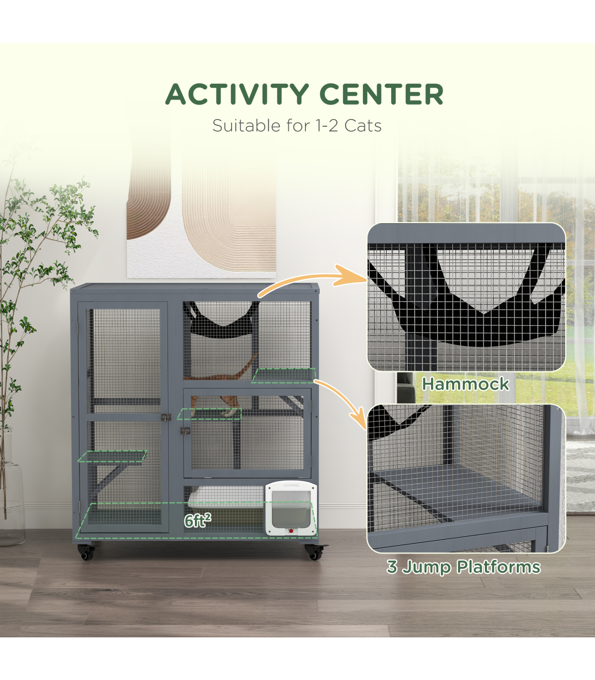 - - Multiple platforms and a hammock for your cat's rest and play needs