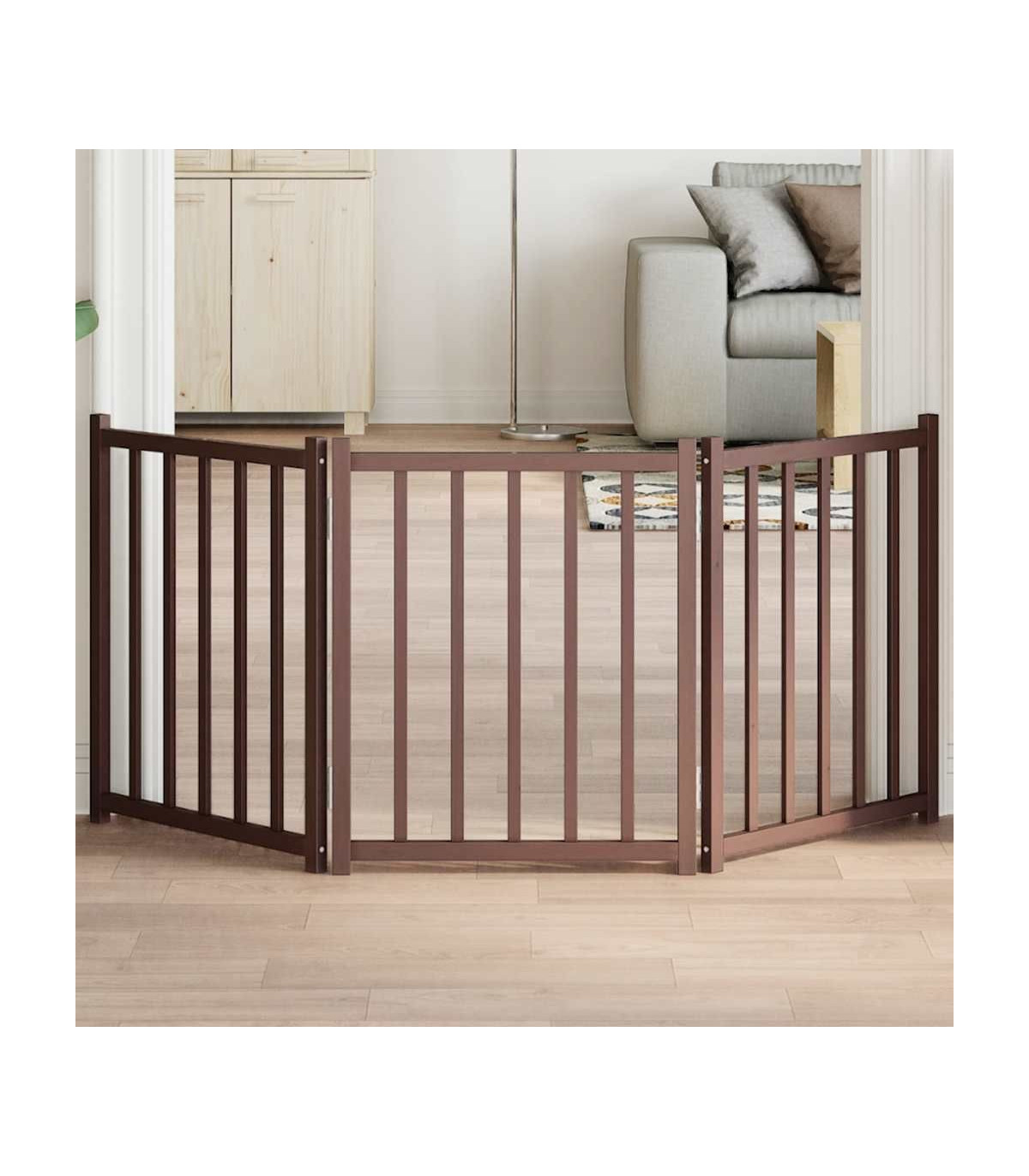 vidaXL Dog Gate Foldable 3 Panels Brown Oak 150 cm Solid Wood Fir