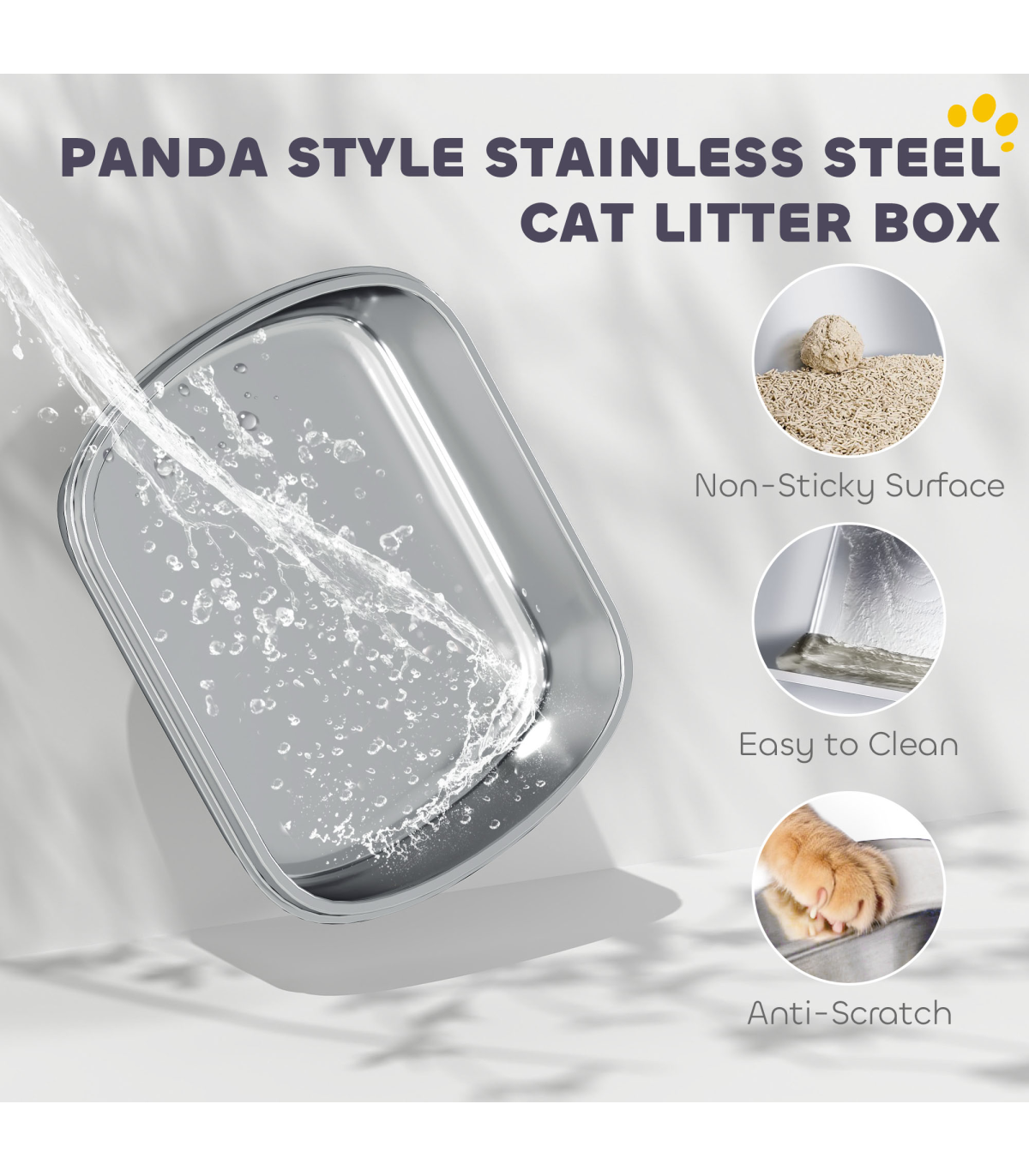 - Smooth stainless steel cat litter box resists stains and cleans up fast
