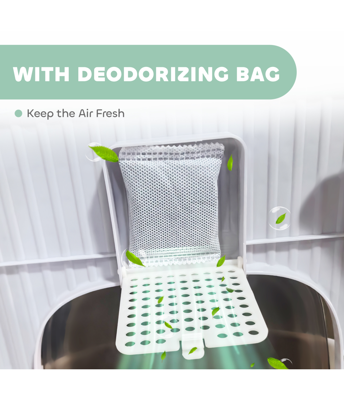 - Includes two deodorization bags to minimise odours