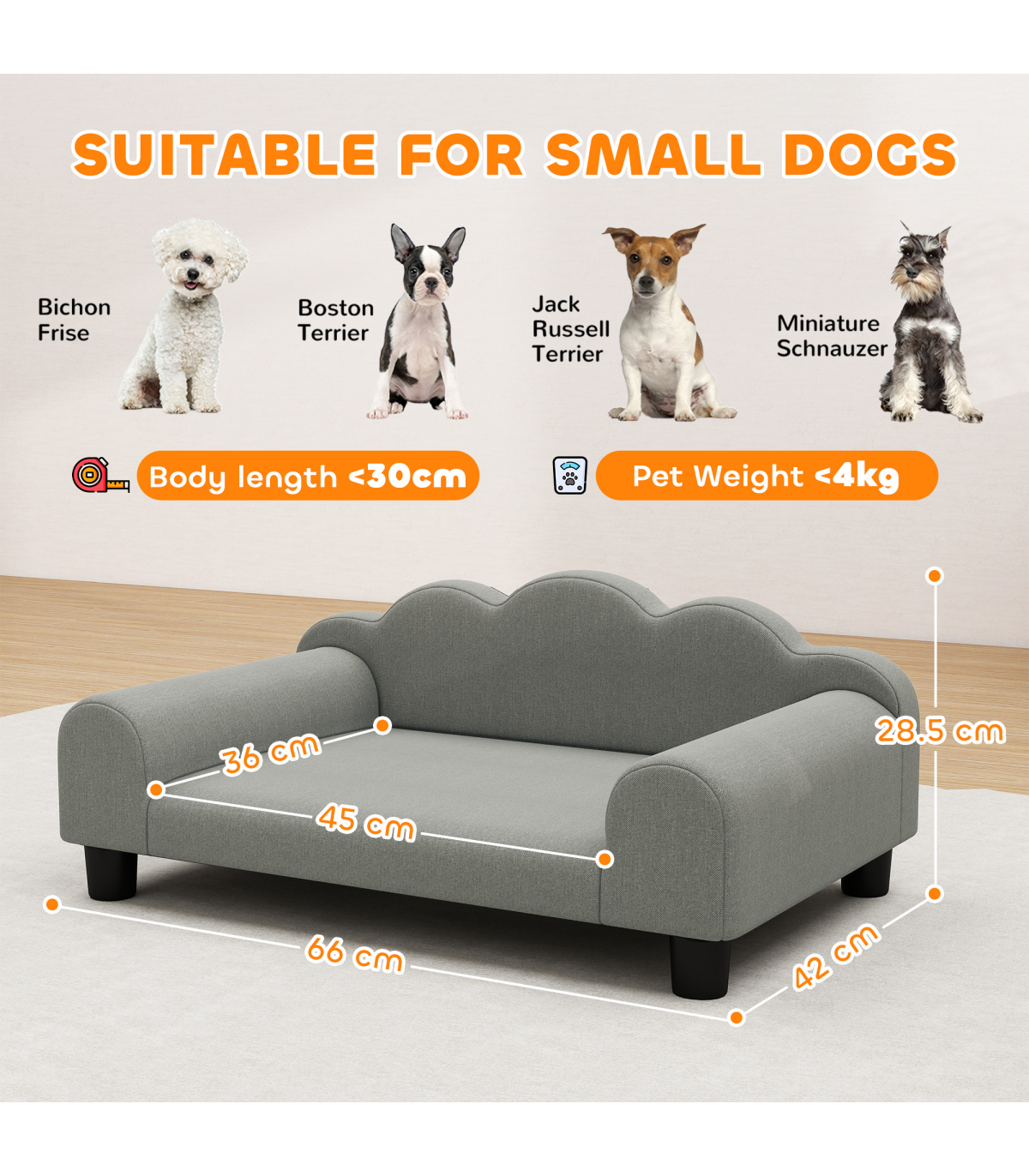 - Suitable for small dogs up to 4 kg and 30 cm in body length