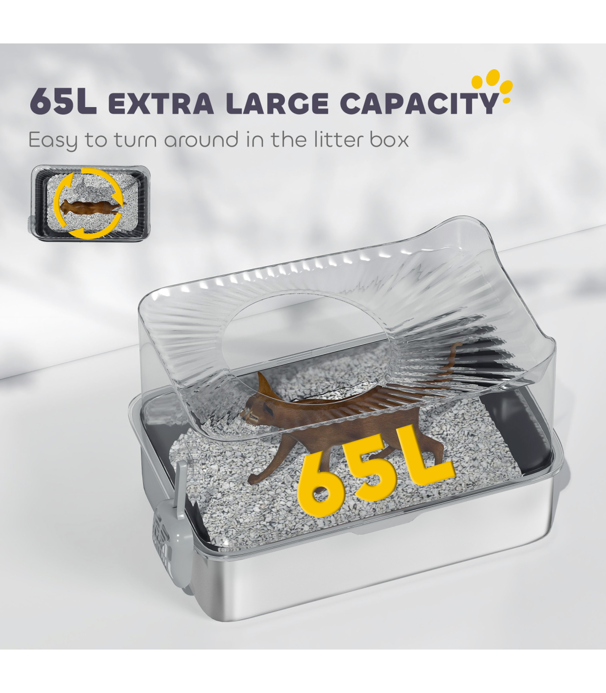 - Spacious 65L capacity accommodates cats up to 9 kg