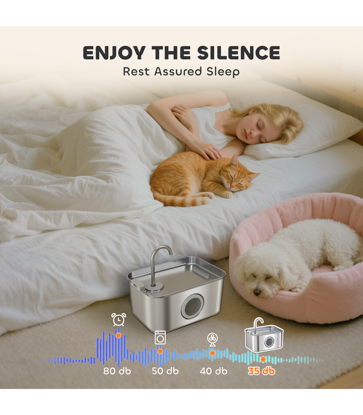 - Ultra-quiet, low-energy pump won't disturb your peace