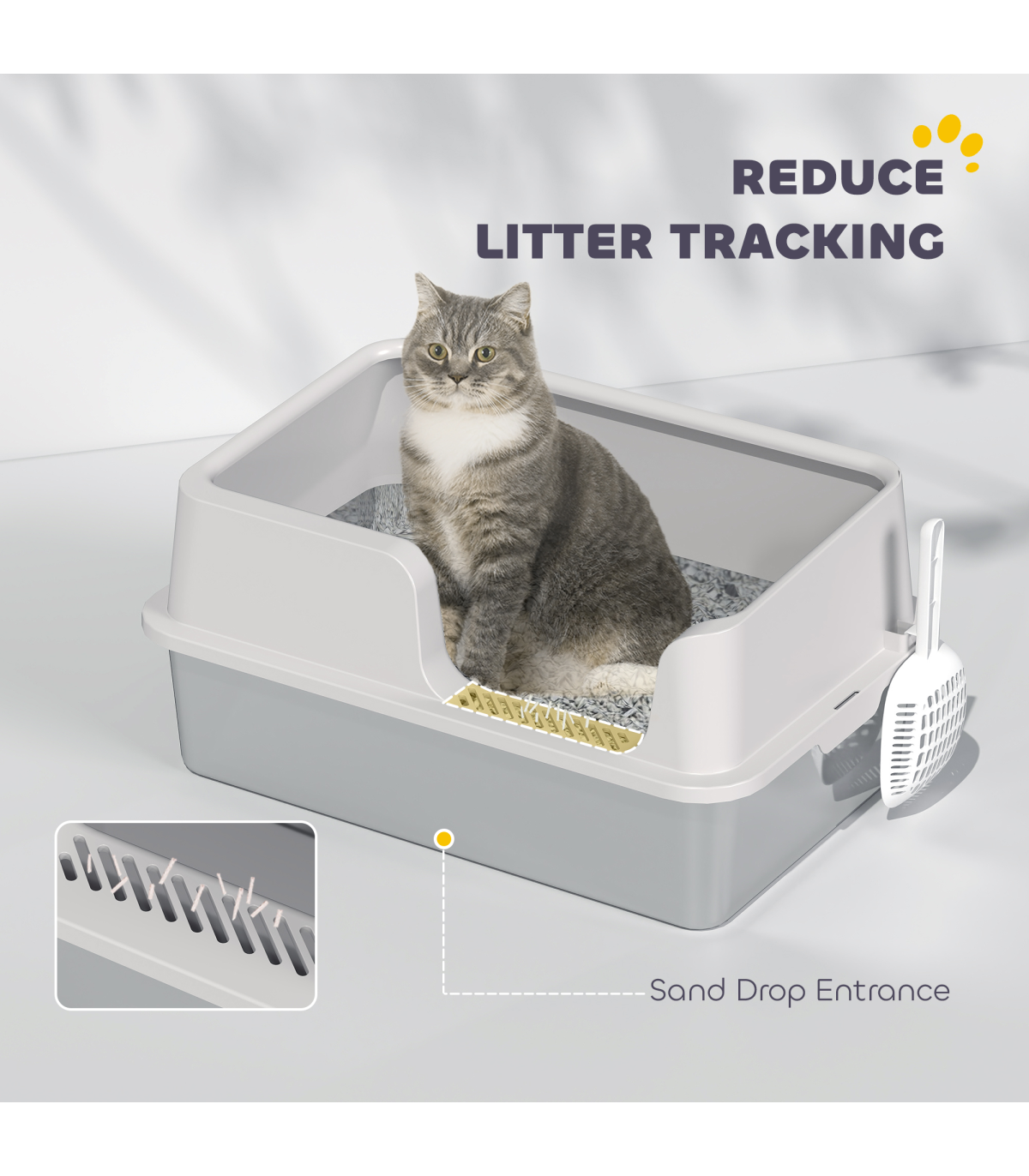 - Sand drop area captures litter from cat's paws
