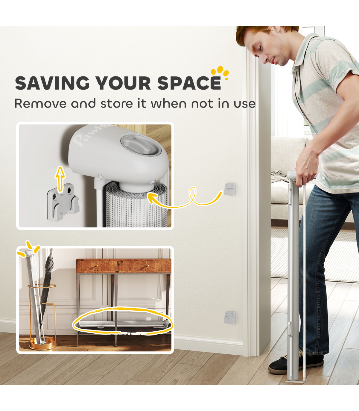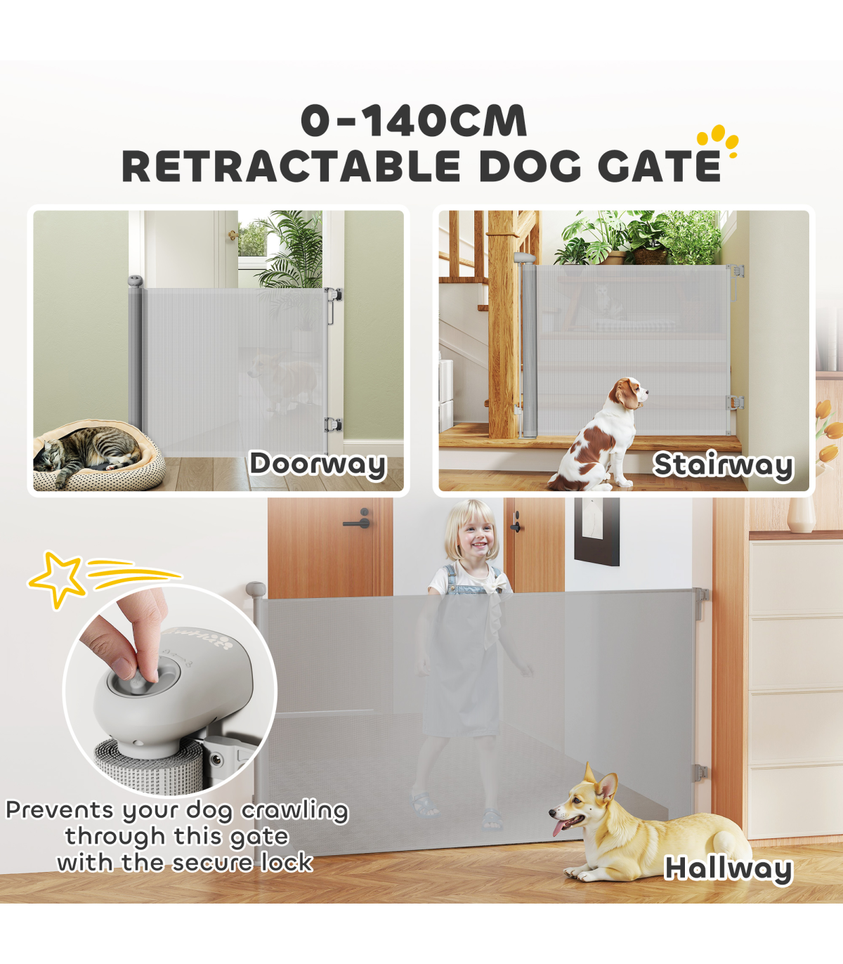 - Retractable dog gate adjusts to fit doorways up to 140 cm