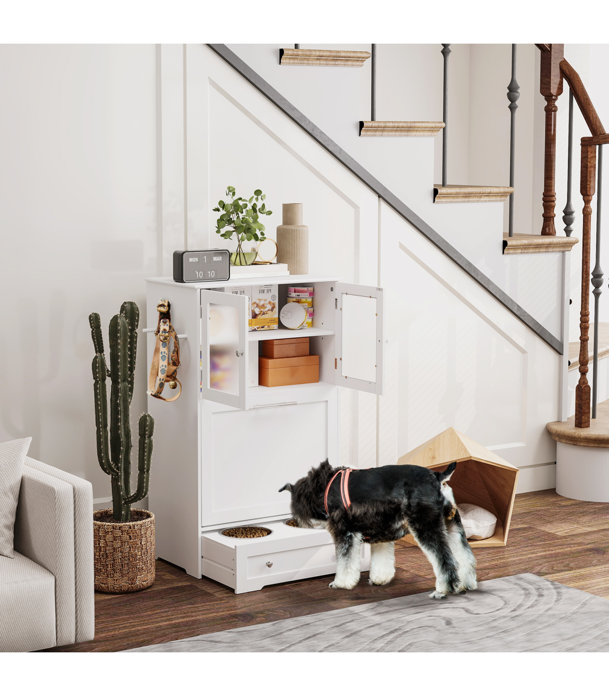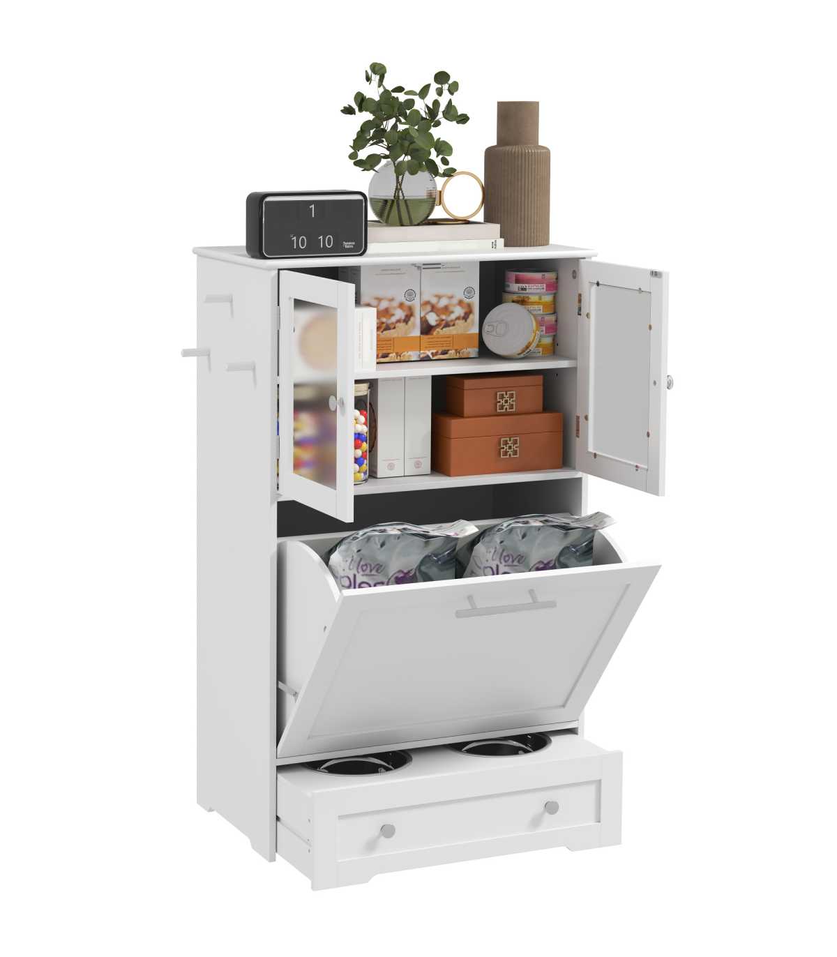● Side hooks add organisational ease for leashes