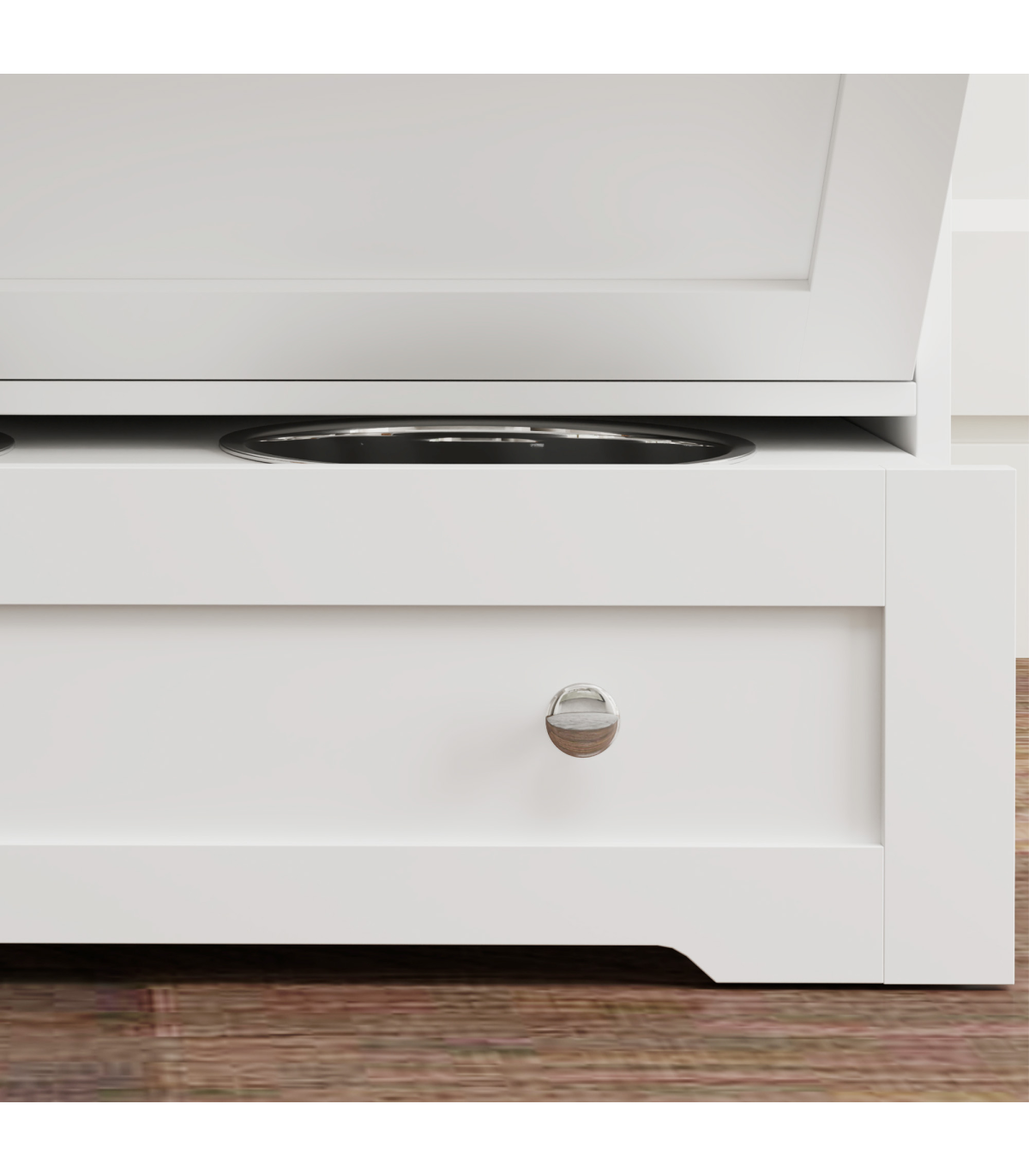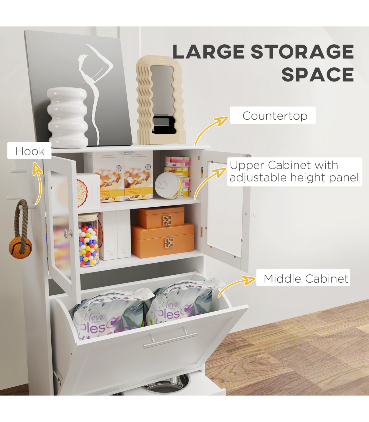 ● Adjustable 3-height panel in the upper cabinet