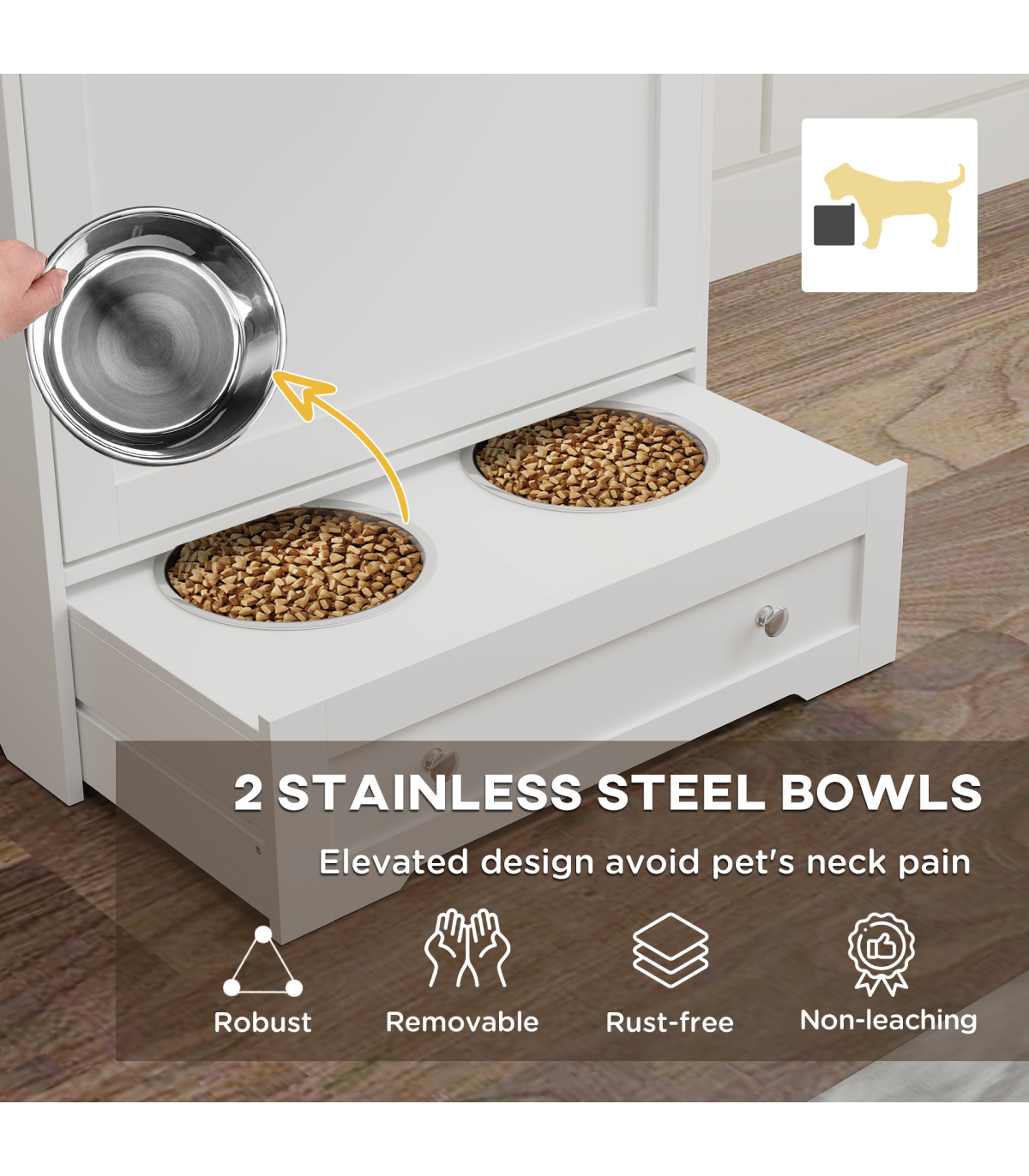● Constructed from MDF with stainless steel bowls