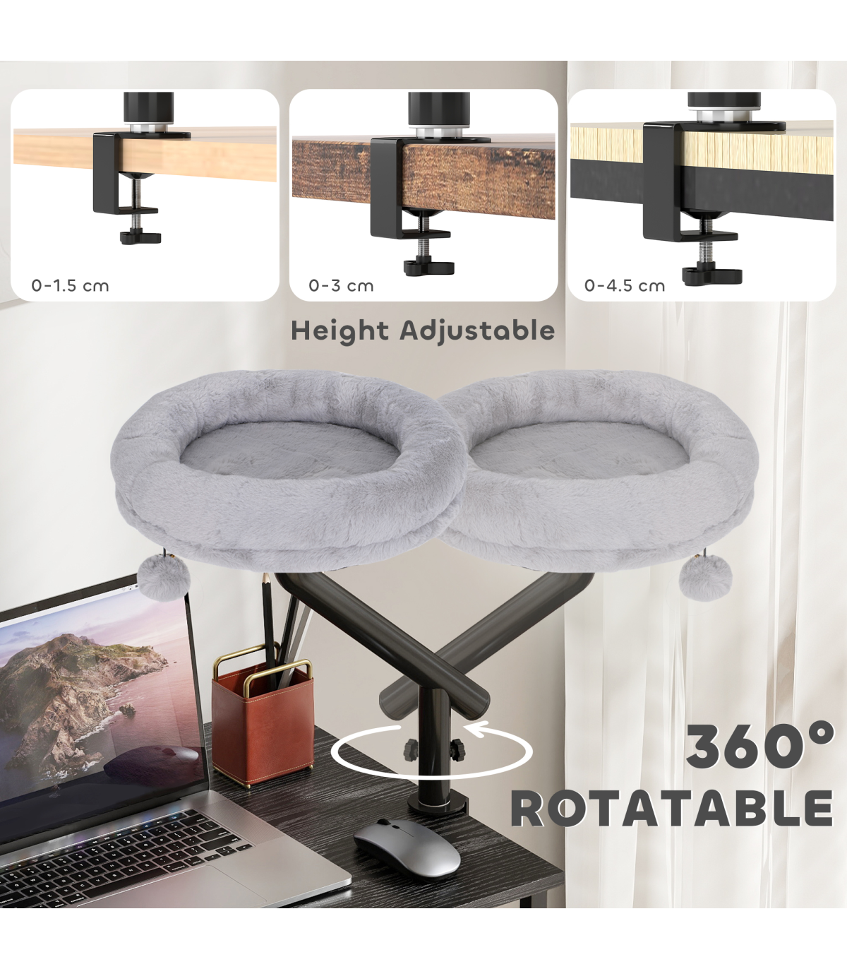 ● Rotates 360° with adjustable height, fitting perfectly on desks or windowsills