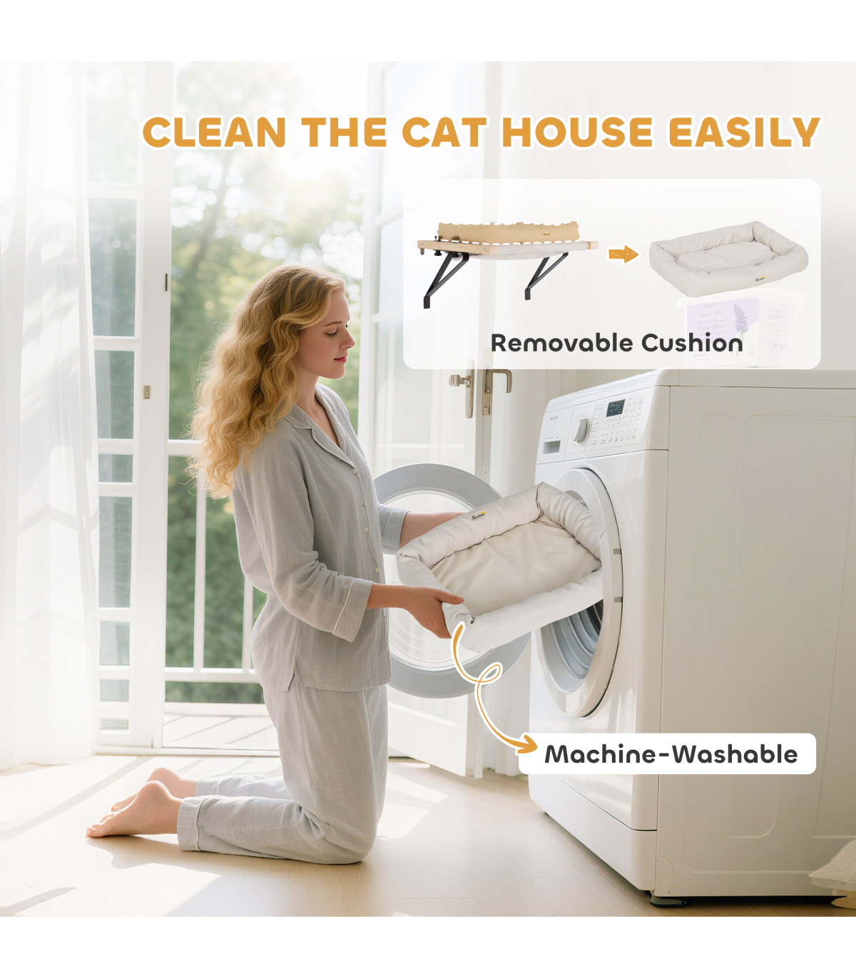 ● Robust pine wood frame supports 6 kg, providing a secure, stable perch