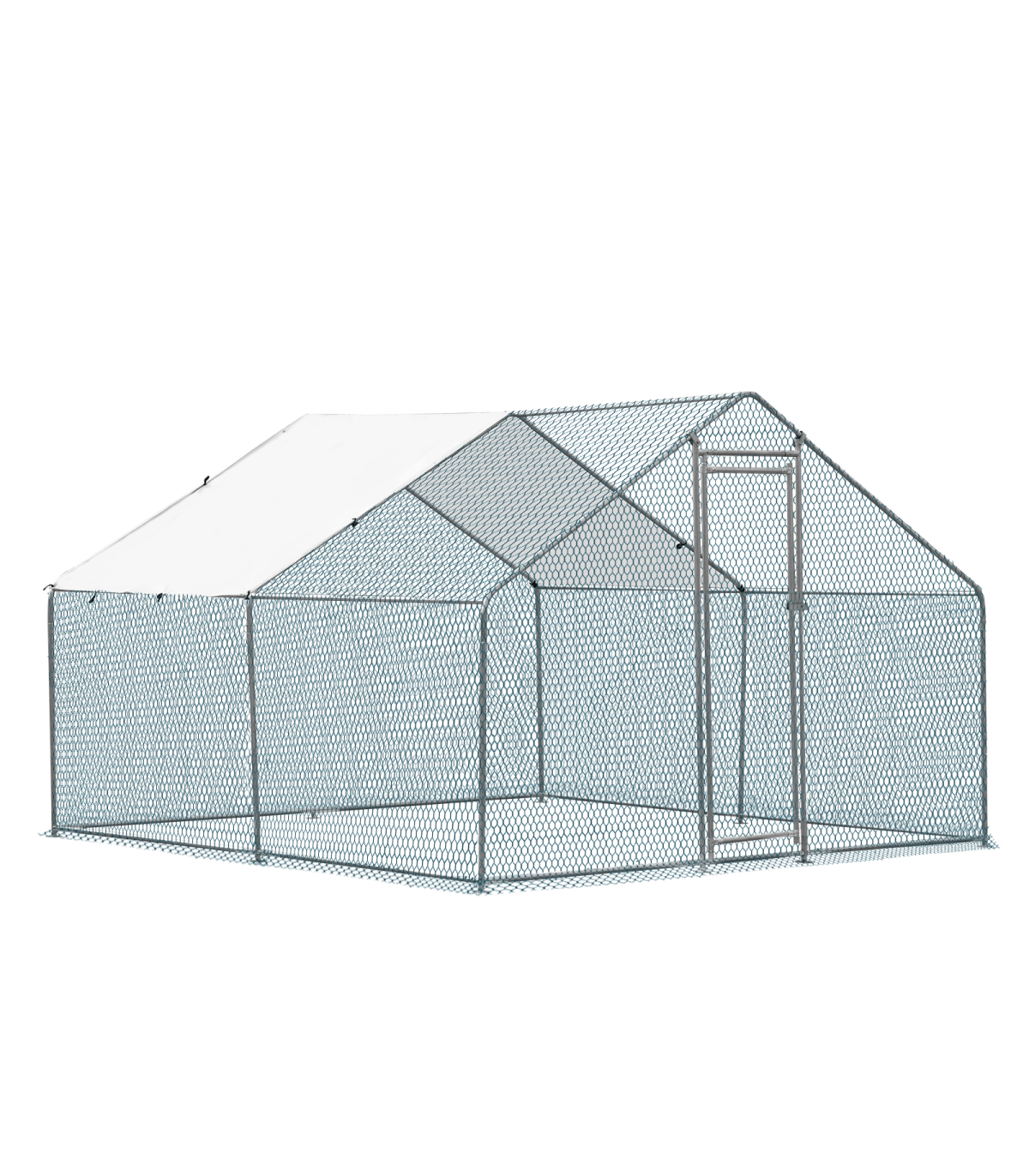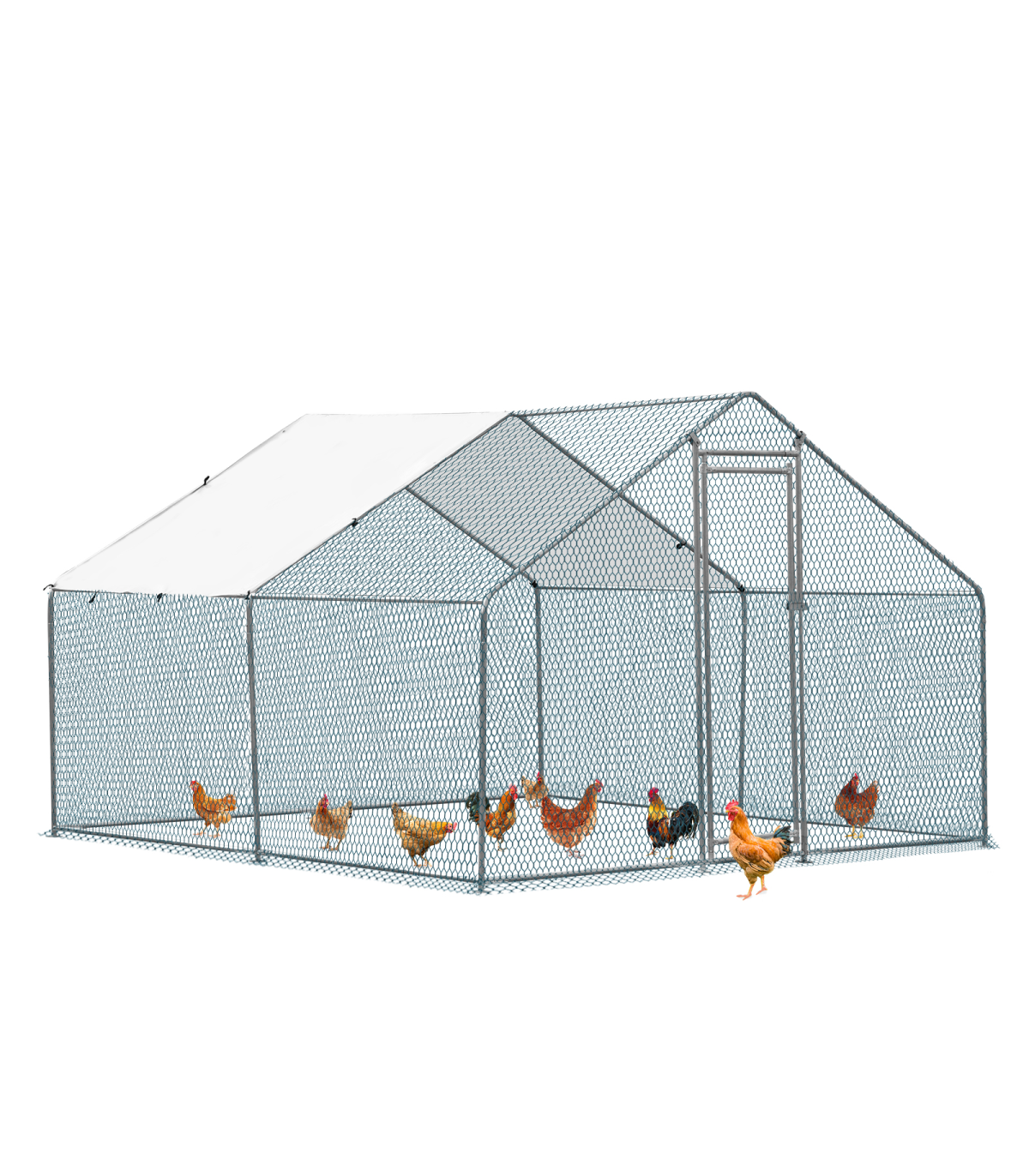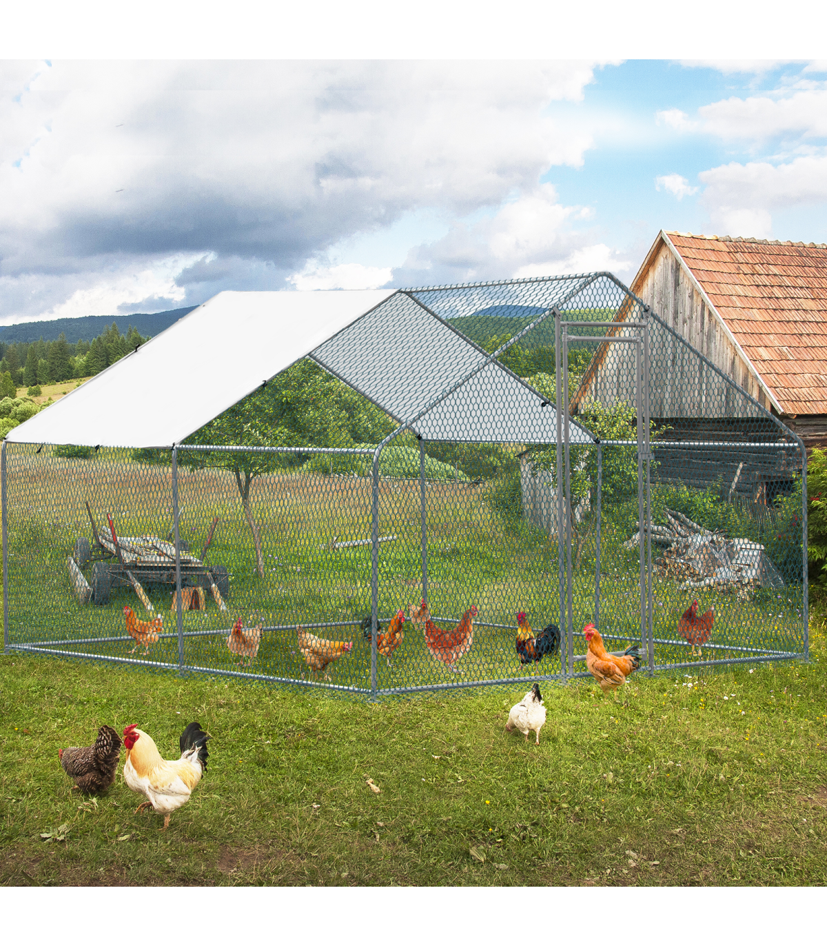 Elevate your backyard farm setup with our expansive 10 x 10 ft Large Metal Chicken Coop. This walk-in poultry cage is designed to provide ample space for your chickens, rabbits, cats, dogs, or other farm animals to roam and play freely. Crafted with meticulous attention to durability and safety, this coop ensures a secure and comfortable environment for your animals. A waterproof cover shields your poultry from adverse weather, while the robust construction guarantees longevity and ease of maintenance. Ideal for outdoor settings, this chicken coop is an essential addition to any backyard farm or garden, offering a blend of functionality, protection, and spaciousness.