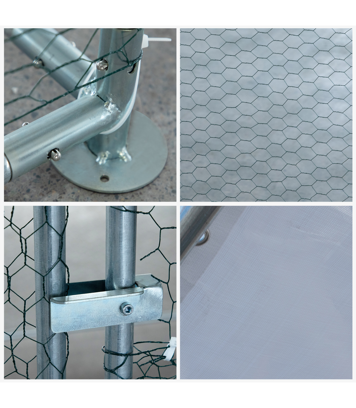 4. Durable Hexagonal Wire Mesh: Features a plastic-coated hexagonal wire mesh made from galvanized wire, providing a robust barrier that prevents escapes and protects against predators.