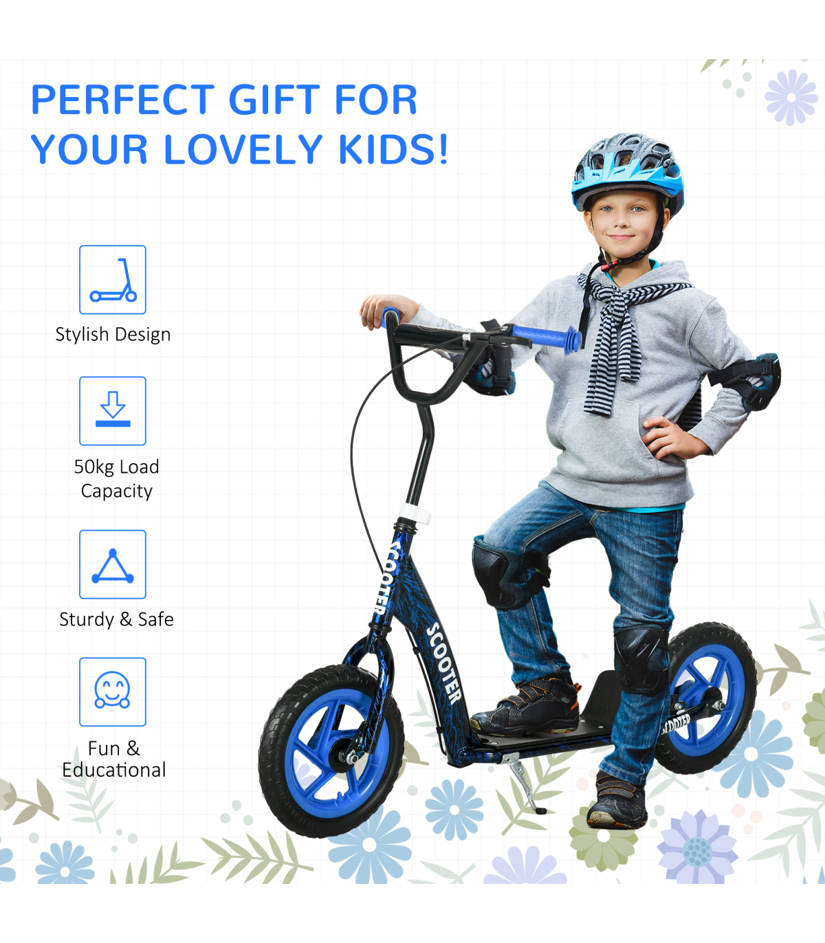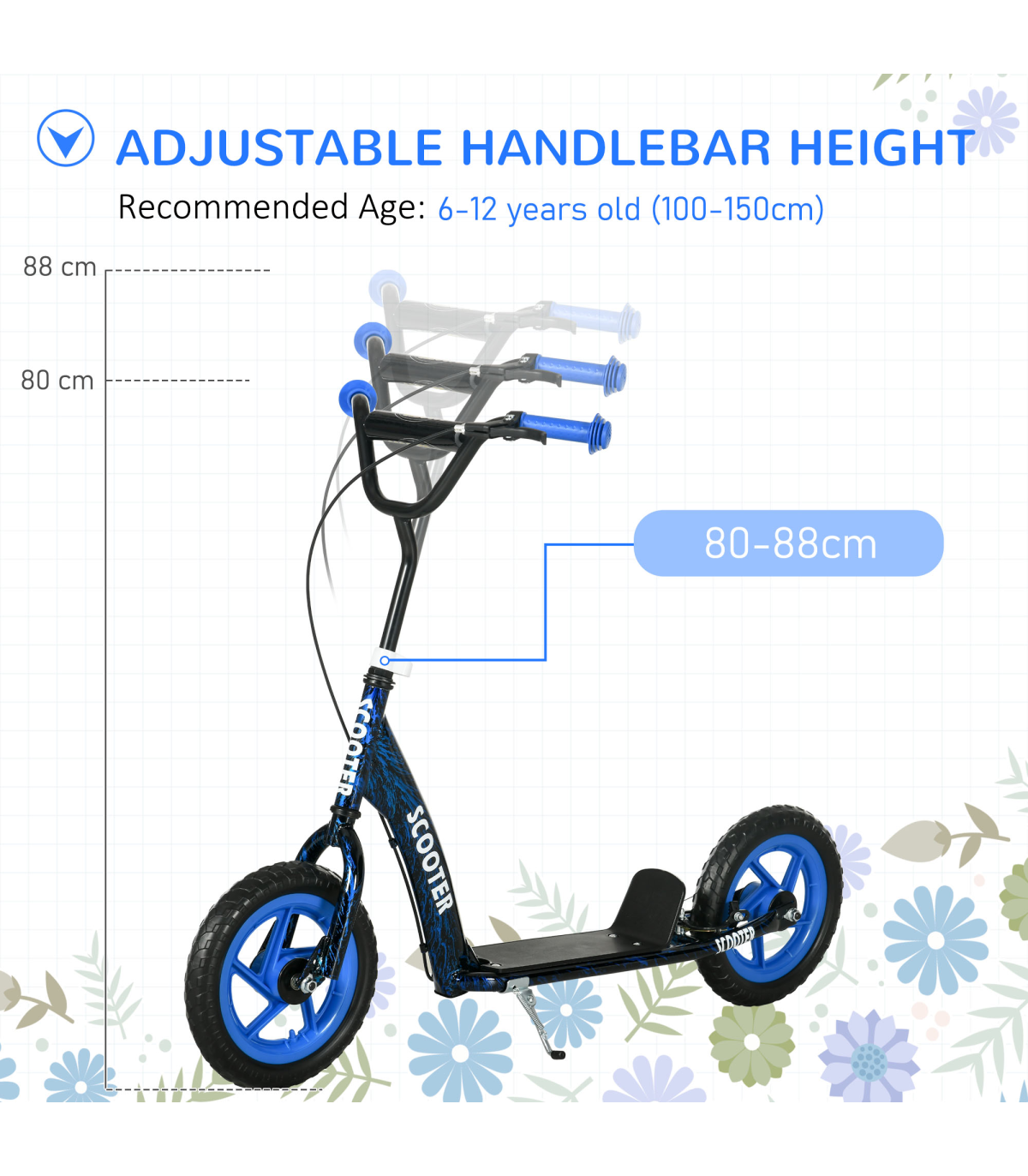 Go on an outdoor adventure with the AIYAPLAY kids scooter! Designed for 6-12 year olds (100-150 cm tall), it grows with them. Safety features such as rear brake, kickstand and non-slip footplate make sure a safe ride. Stylish and easy to assemble, it's a great companion for young explorers. Encourage your children to embrace the great outdoors and encourage an active lifestyle that's both exciting and healthy. Get ready for fun on wheels!