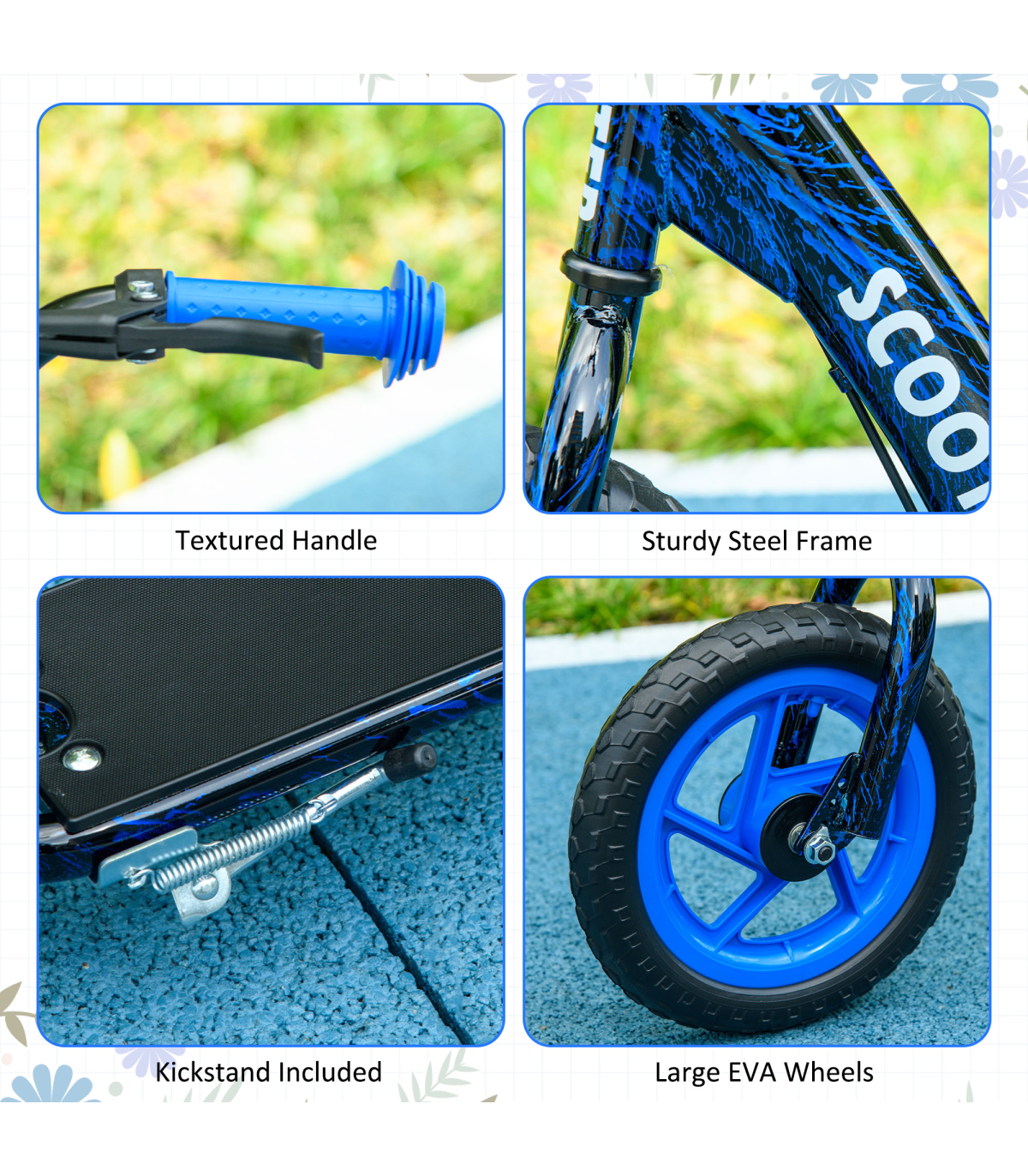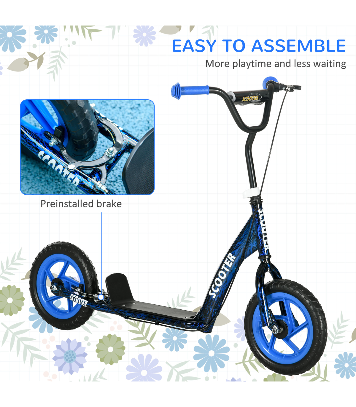 ● With rear brake, kickstand and non-slip footplate, safe to use