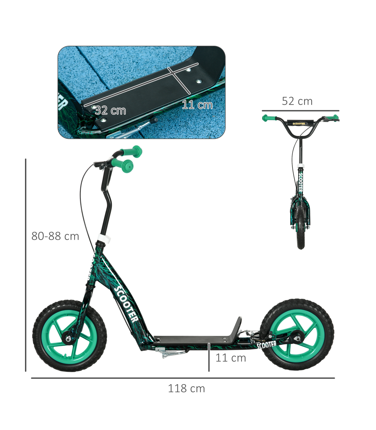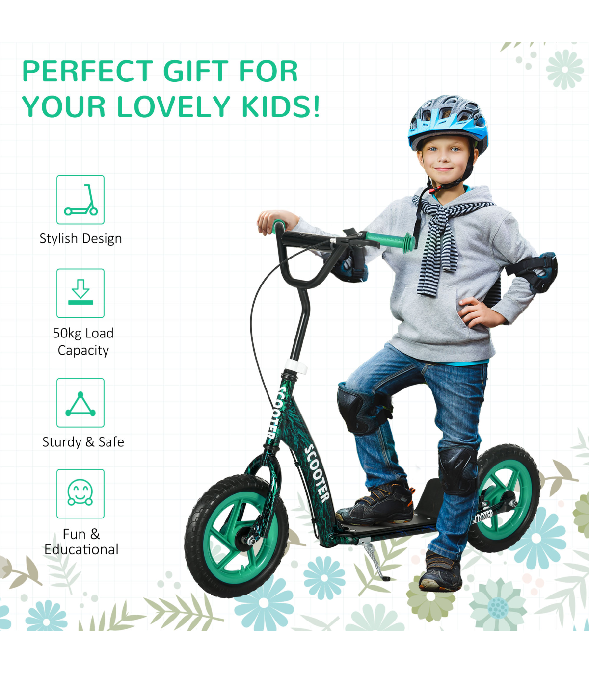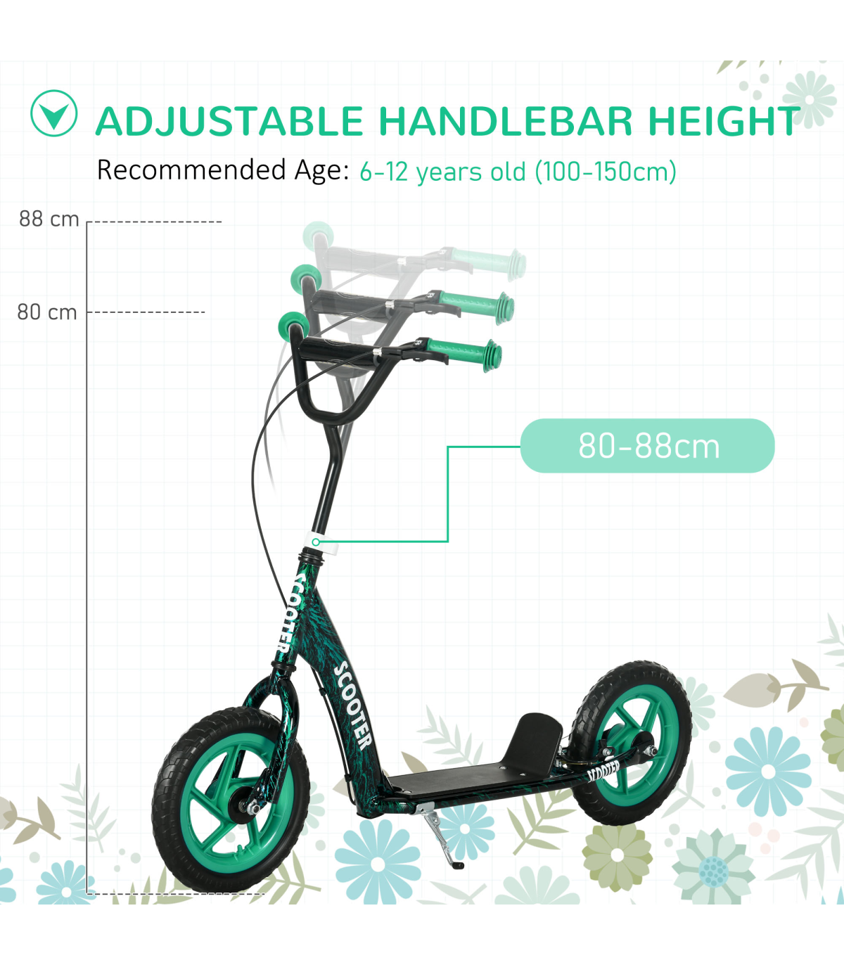 ● With rear brake, kickstand and non-slip footplate, safe to use