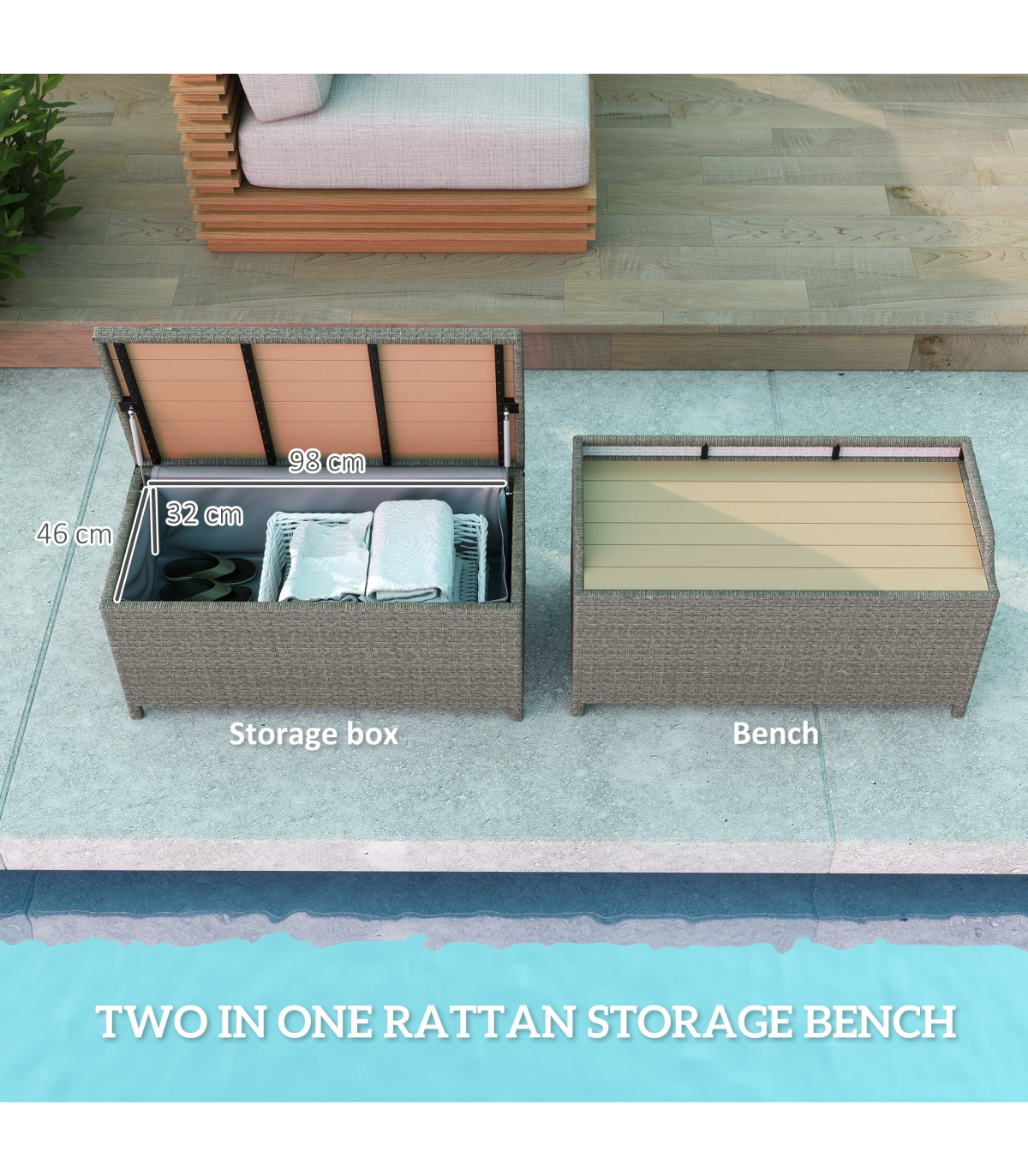 ● Box Storage Dimension: 98L x 46W x 32H cm