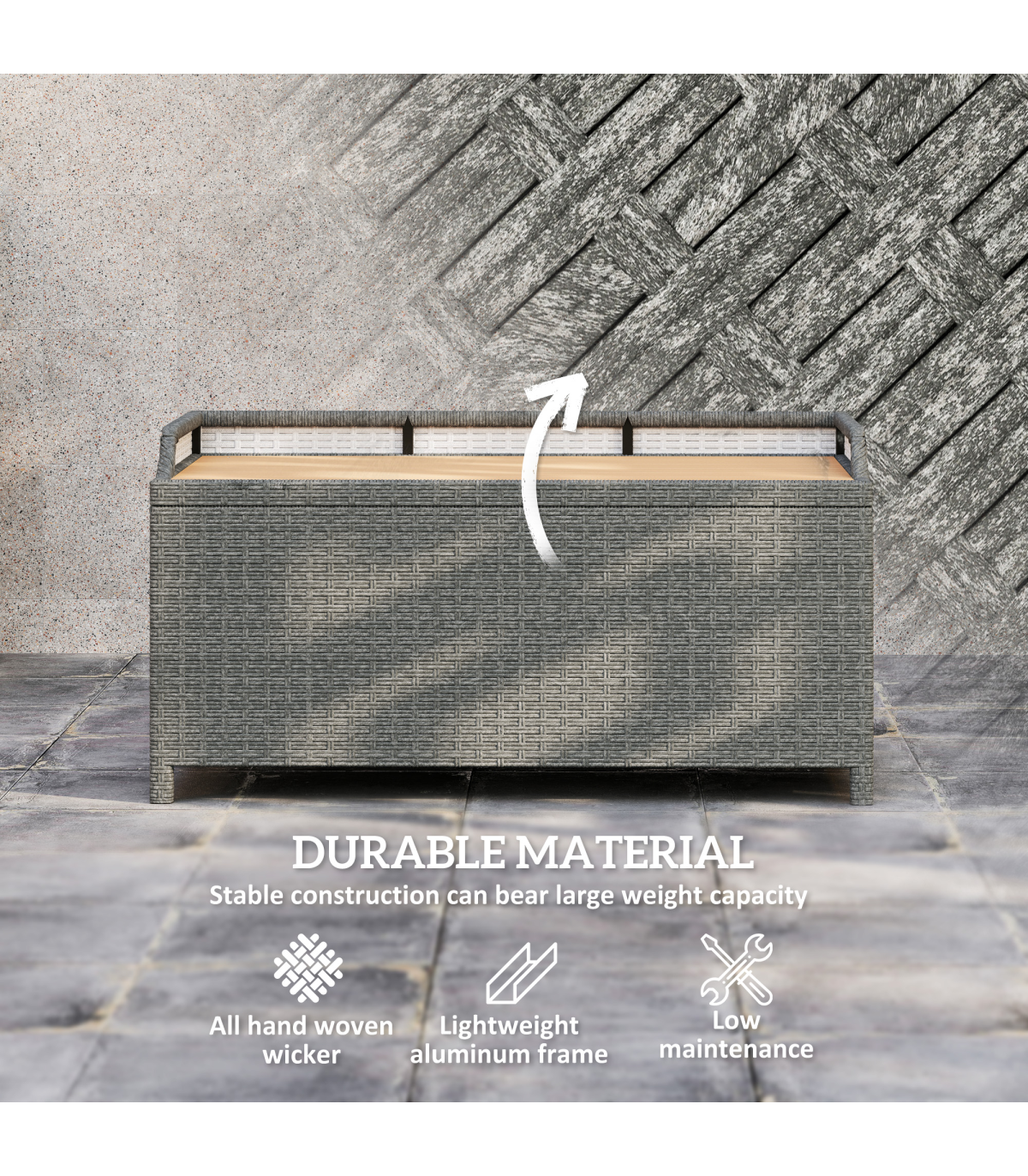 ● Tough aluminium frame, wrapped in wood-effect PE wicker