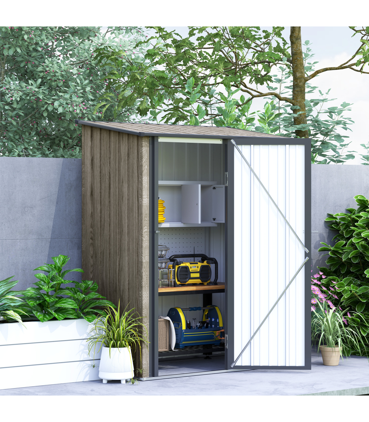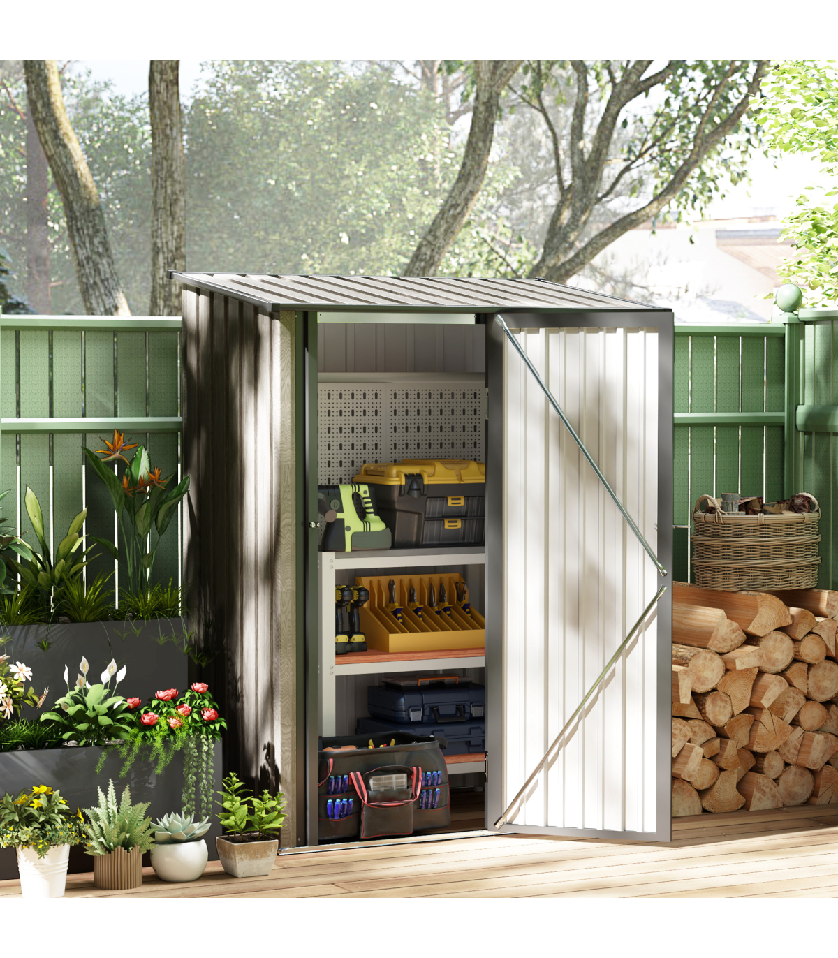 ● Spacious and open inner storage area for your garden tools, equipment, outerwear– and everything else in-between
