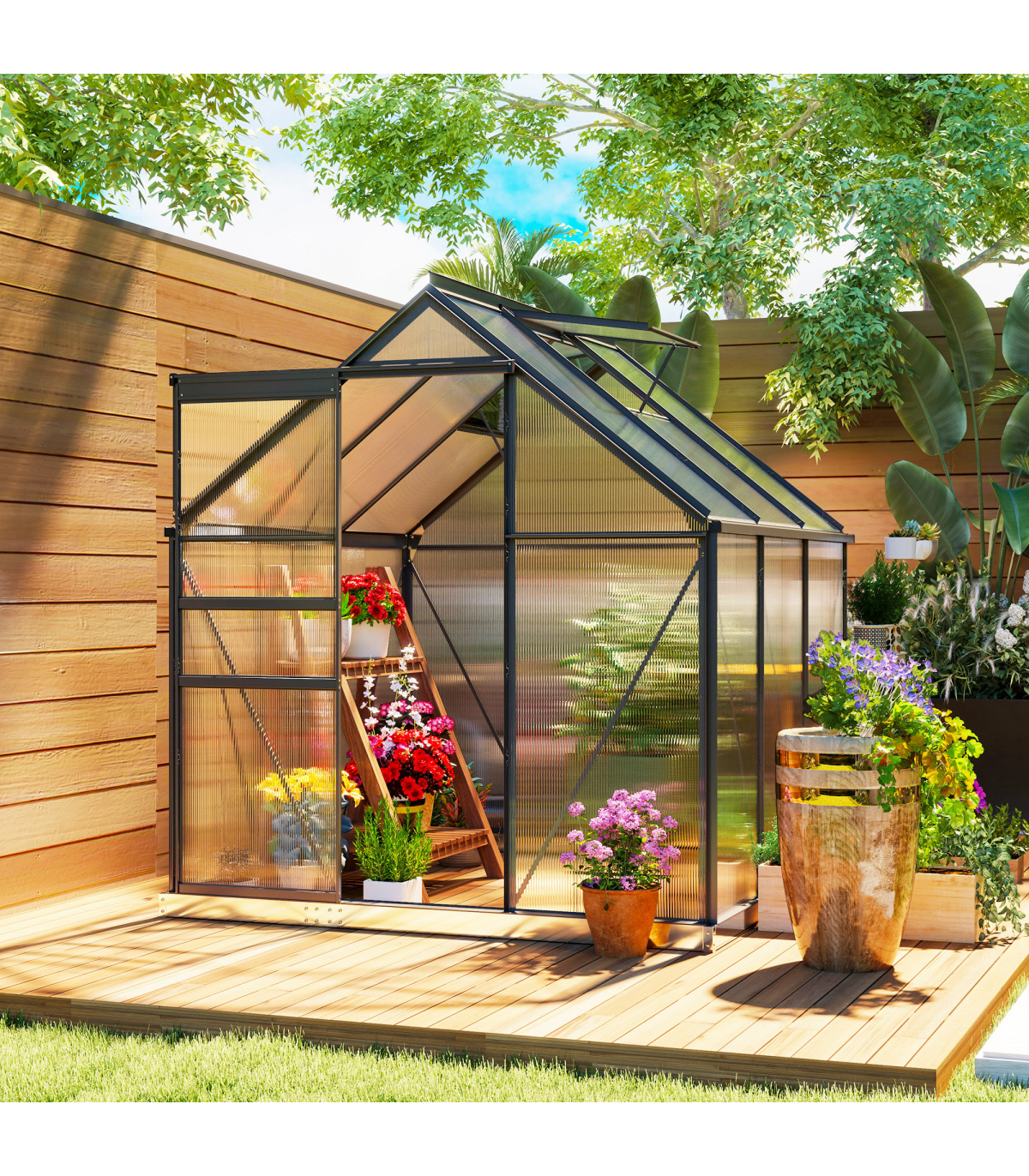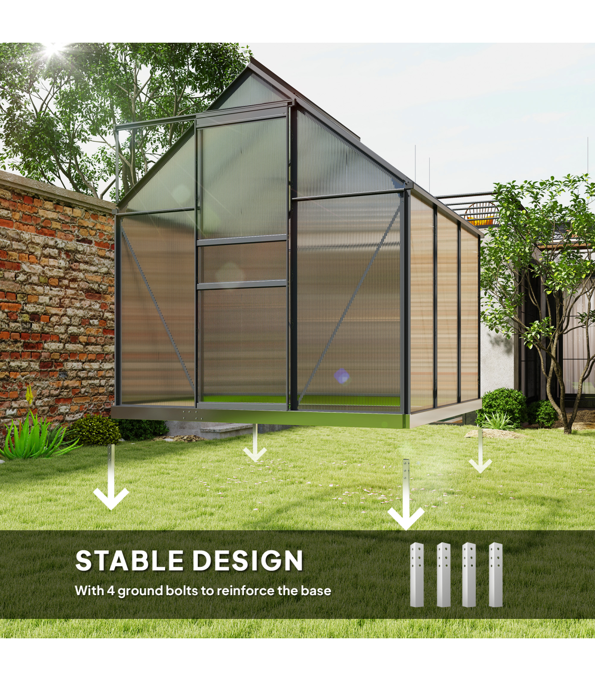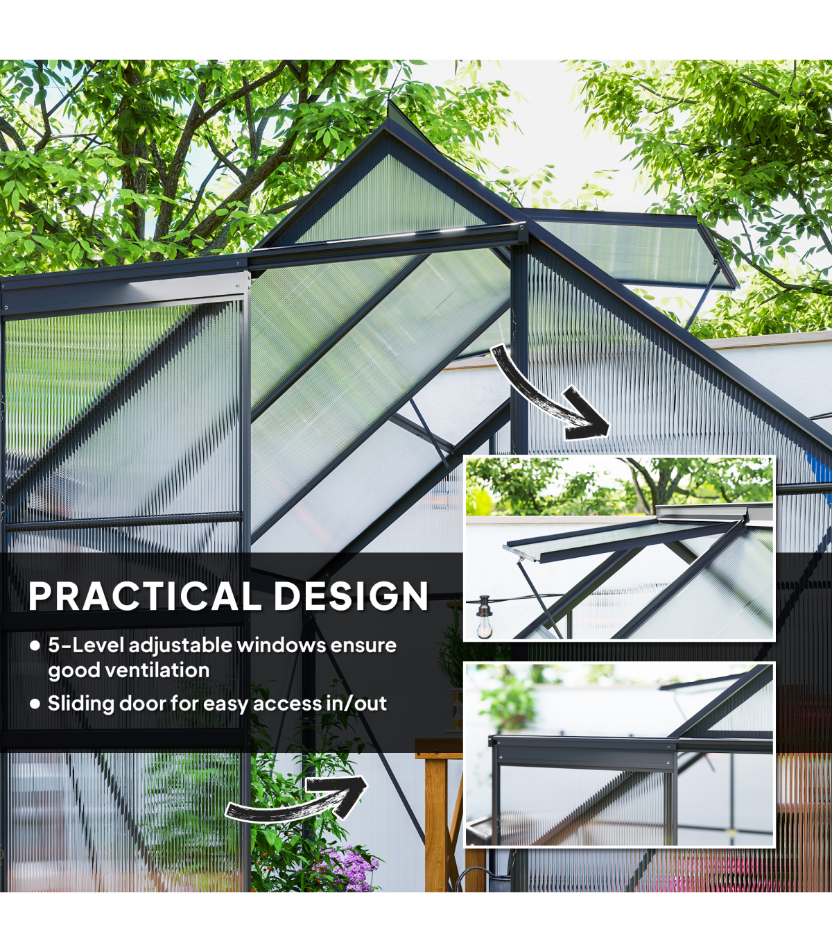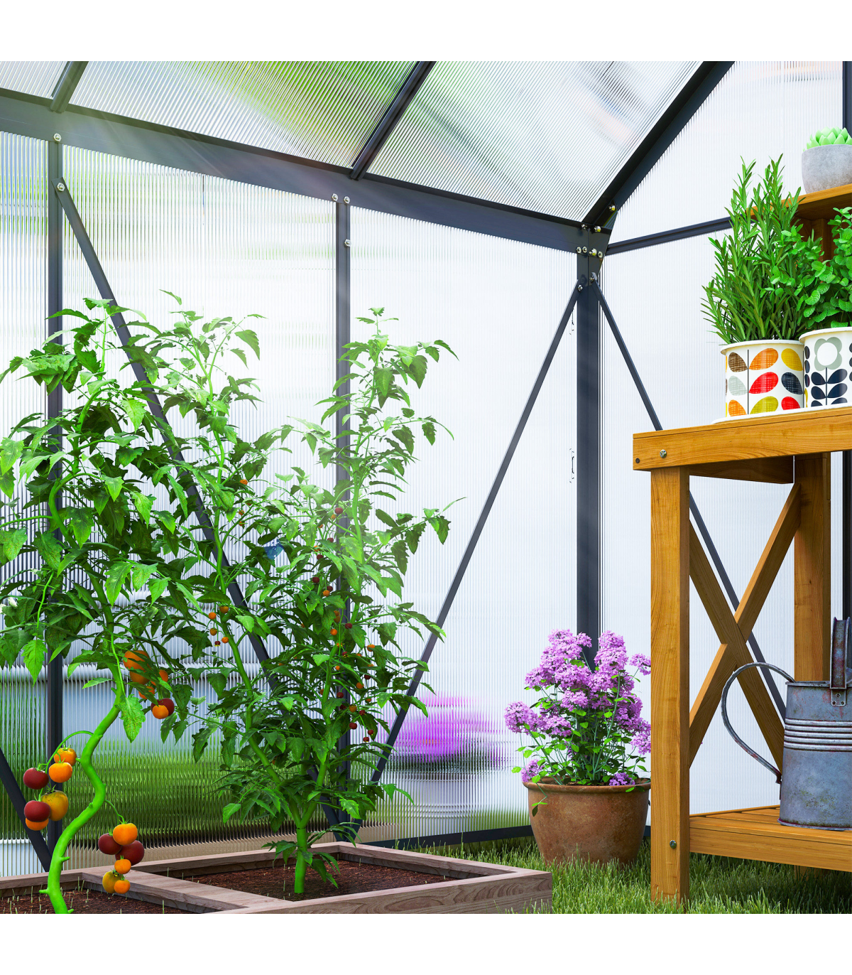 ● Aluminium frame means a strong core, with polycarbonate to shelter inner plants