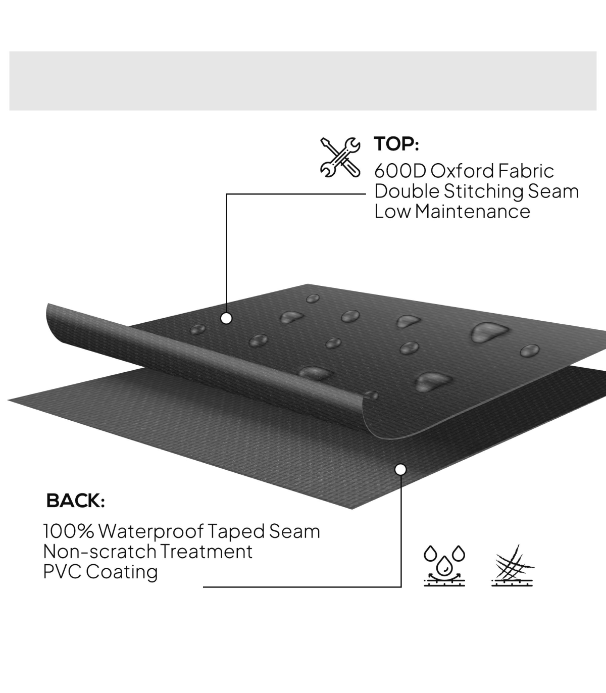 ● Heavy-duty oxford cloth with interlocking seams for durability and protection against tearing and ripping