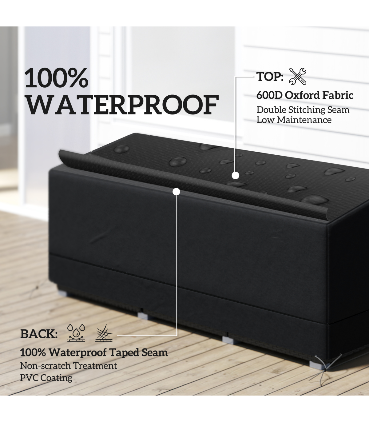 ● PE coated oxford fabric is water & UV resistant, helping to protect your furniture