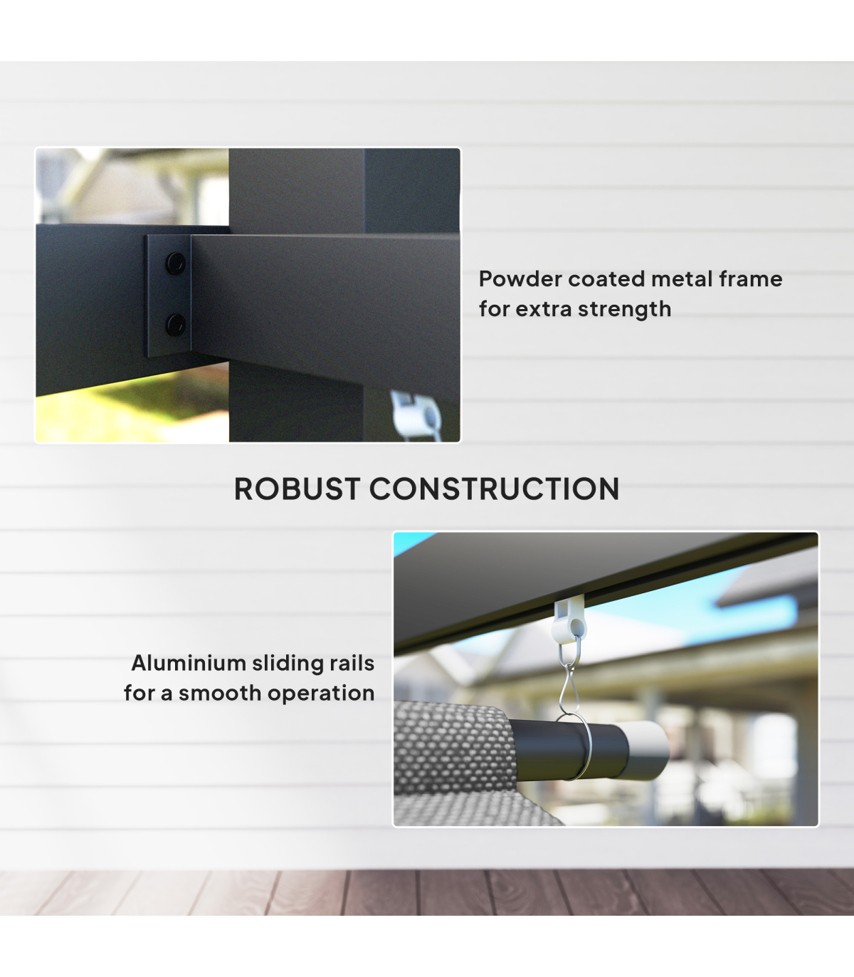 ● Aluminium sliding rails allow for smooth canopy operation