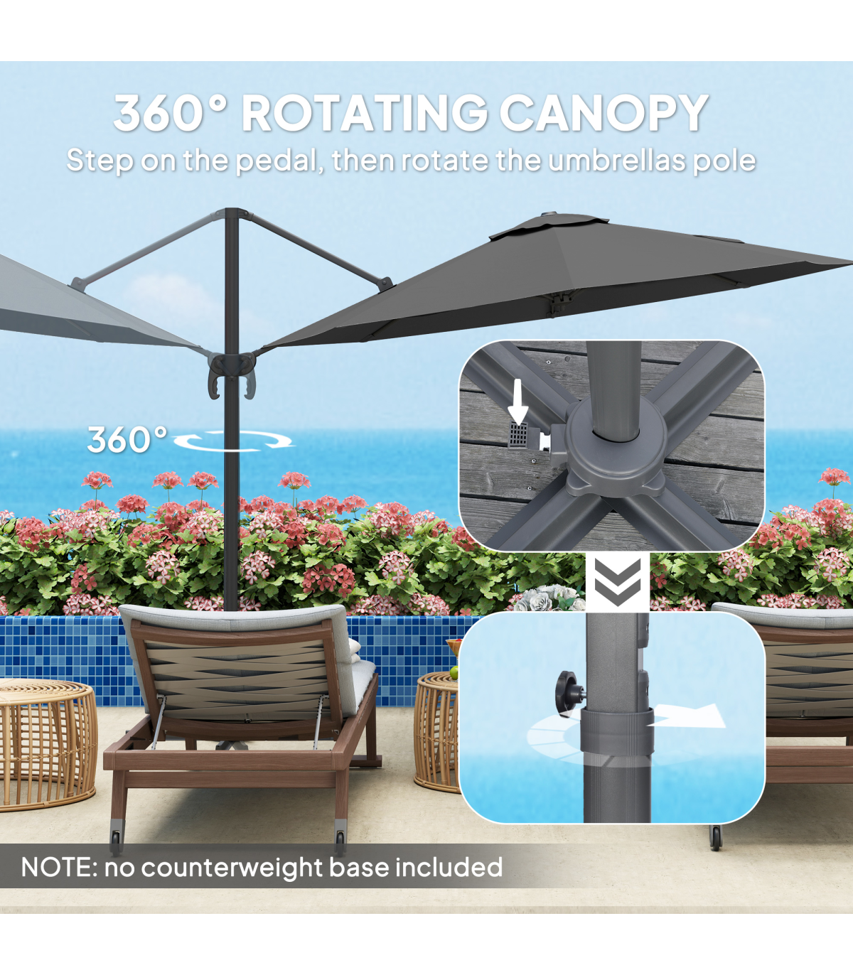 ● Five-angle adjustable canopy and 360° to create shade in a place you want