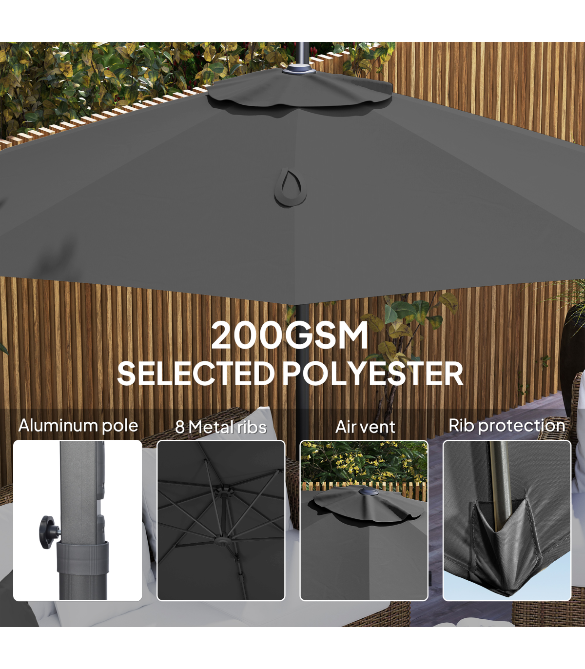 ● Strong aluminium frame and metal support ribs