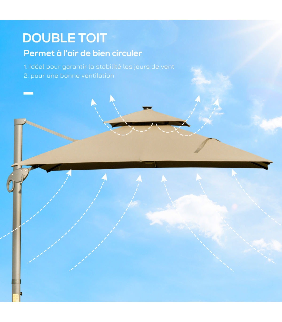 ● Two-tier canopy - small top for airflow